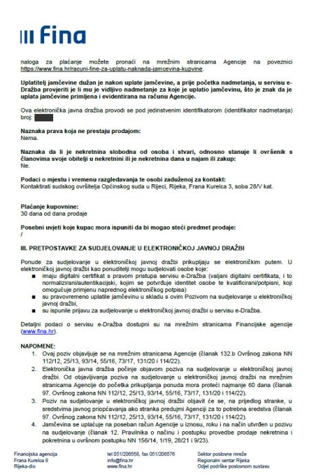 Uvjeti i način provedbe dražbe navedeni su u istaknutom pozivu na sudjelovanje.