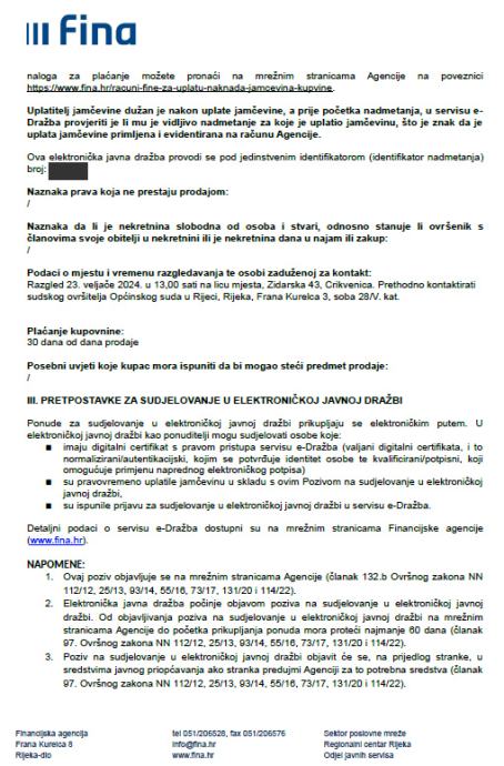Ročište za razgledavanje predmetne nekretnine u Crikvenici održati će se dana 23.2.2026 u 13 sati.