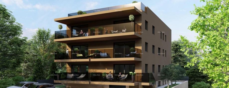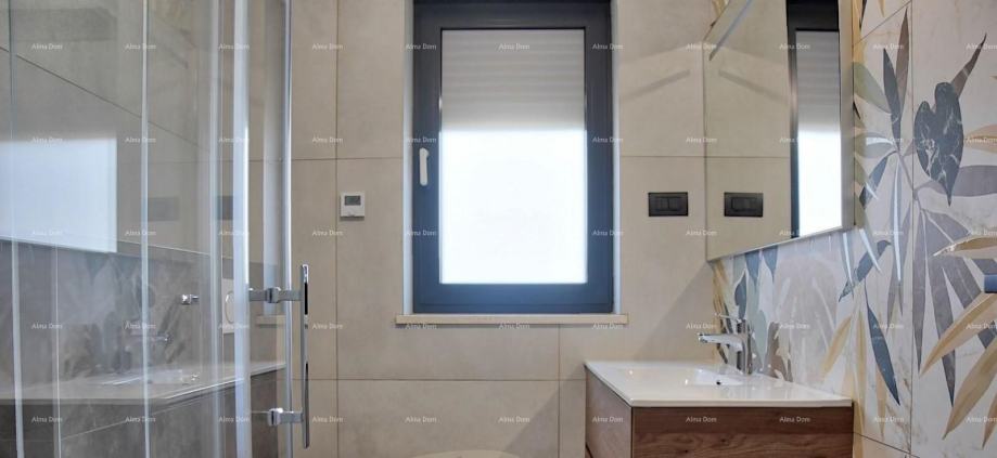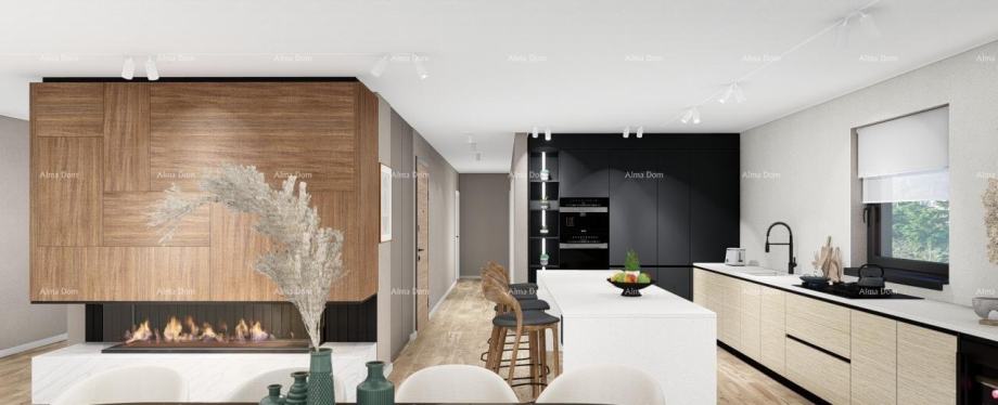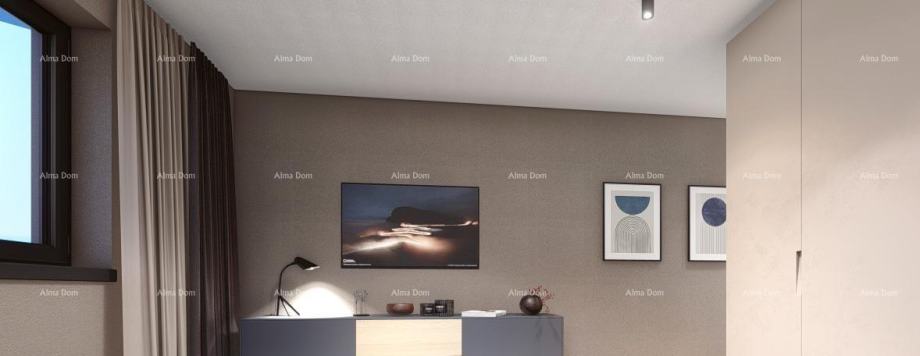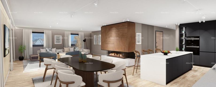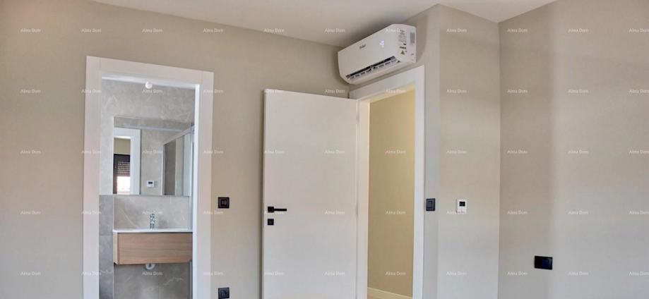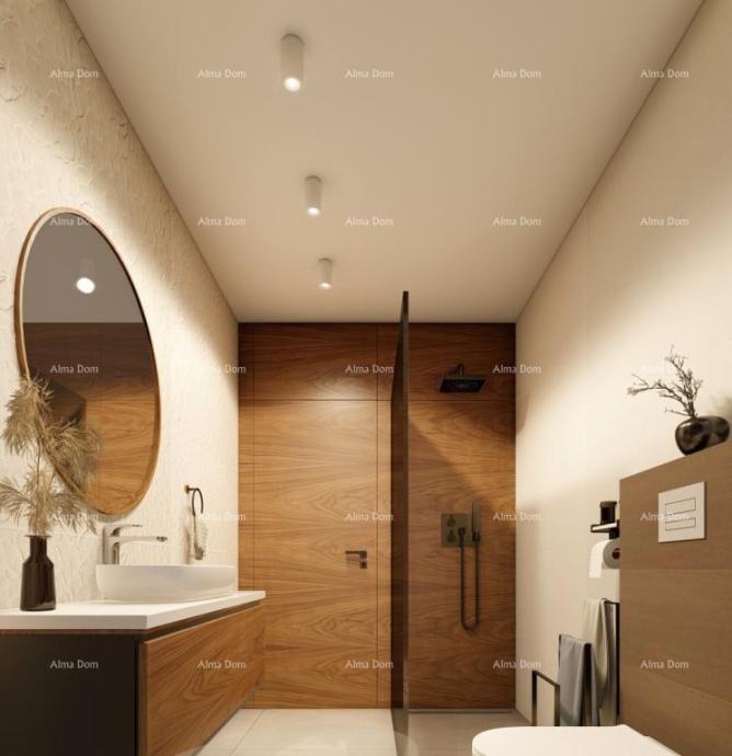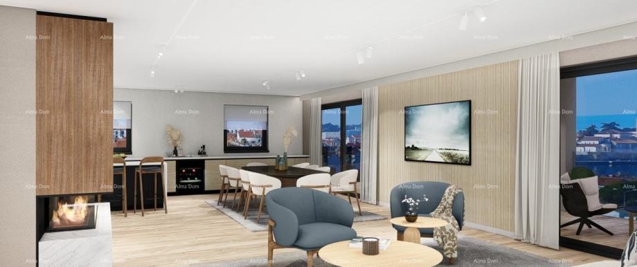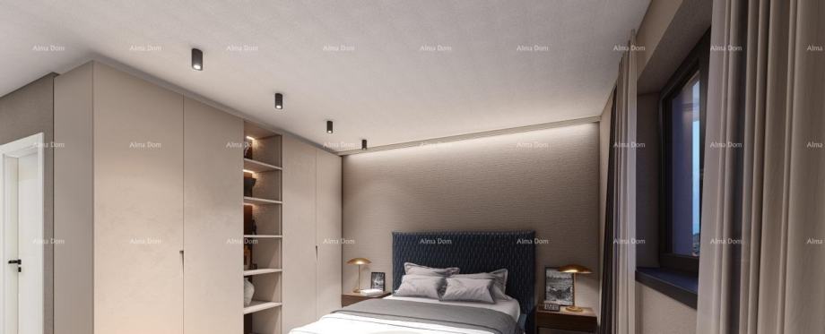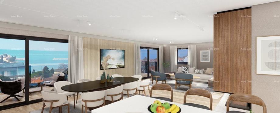 Ovaj ekskluzivni penthouse u Poreču će se sastojati od velikog dnevnog boravka, kuhinje i blagavaone. Stan će imati 5 spavaćih soba i 5 kupaona. Kvaliteta ovog stana je sama njegova lokacija; na samo 500 metara udaljenosti od mora, tako da se može ići pješke na plažu. Udaljenost do Trga slobode u centru grada je 900m.