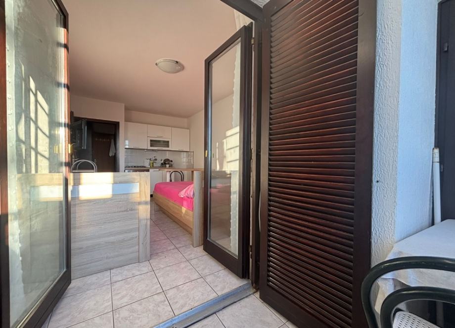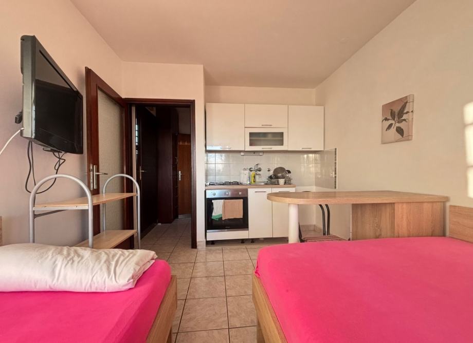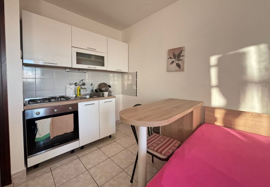 Sastoji se od ulaznog hodnika, kupaonice s wc-om, dnevnog boravka s kuhinjom i terase.