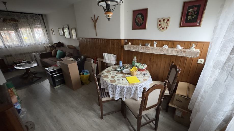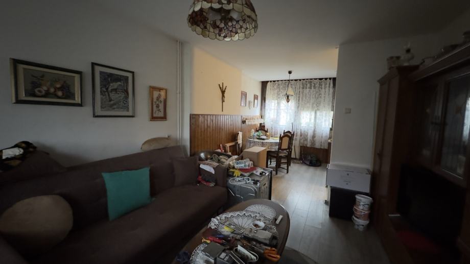 Prodaje se dvoetažni stan na Plavom Polju. Izvrsna lokacija, slijepa, mirna ulica u blizini dječjeg vrtića, škole, doma zdravlja, autobusnog i željezničkog kolodvora, trgovačkih centara...Stan je u sklopu zgrade sa sveukupno pet stambenih jedinica. Noviji krov, termoizolacijska stiropor fasada, plinsko etažno grijanje. Upisan je sa 51,5 m2. U naravi se radi o dvoetažnom stanu koji se u prizemlju sastoji od ulaznog hodnika, wc-a, dnevnog boravka sa kuhinjom i blagovaonicom, terase, te wc-om, ostavom, kupaonicom, spavaćom sobom i garderobom na katu. Postoji mogućnost izvođenja sobe ili drugogo korisnog prostora u potkrovlju. Uz stan se prodaje i legalizirana garaža. Stanu pripada i dodatna ostava u zajedničkom dijelu zgrade i dvorište ispred ulaza u stan sa sjeverne strane zgrade i manje dvorište ispred terase sa druge, južne strane zgrade. Kupaonica je renovirana sa promjenjenim instalacijama, novijim plinskim bojlerom.