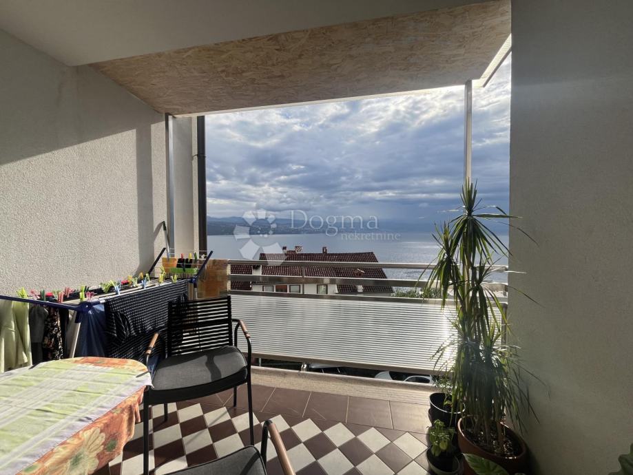 Stan se sastoji od hodnika, dvije spavaće sobe s izlazom na balkon, kupaonice, prostrane open space zone s kuhinjom, trpezarijom i dnevnim boravkom, lijepom loggiom s pogledom na cijeli Kvarner.