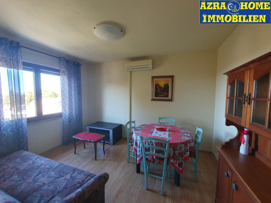 Pazin, na mirnoj lokaciji udaljenoj 4km od grada, nalazi se ovaj stan od 49 m2 kojeg ćini : hodnik, kupatilo, spremište, spavaća soba, kuhinja, dnevni boravak i terasa. Ispod stana je garaža površine oko 40 m2 . Stanu pripada i dvorište površine oko 400 m2 preko kojeg je uređen prilaz garaži.