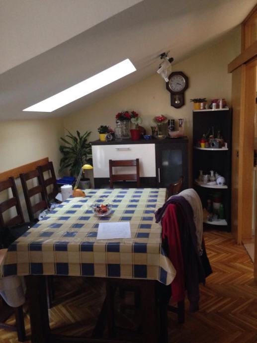 Stan je 2013 godine u potpunosti renoviran (nove keramičke i kamene pločice, tuš kada, kombinirani bojler,instalacije) sa namještenom kuhinjom izrađenom po mjeri i svim kuhinjskim elementima (peć, napa, perilica suđa, ventilacija) sa hrastovim parketima u sobama .