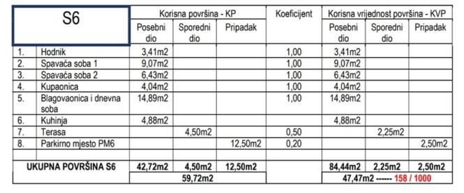 U cijeni stana uračunato je jedno parkirno mjesto.