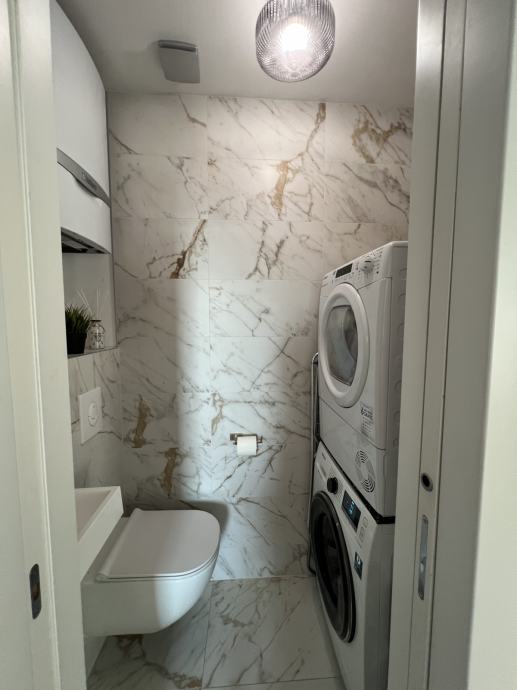 Od malih kućanskih aparata:perilica i sušilica Samaung, kuhinjski uređaji Bosch 1 klasa, dupli frižider, tuš i pipe Hans Grohe, namještaj (kuhinja i ormari) rađeni po mjeri od MDF-a.