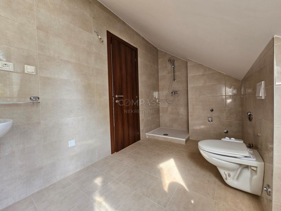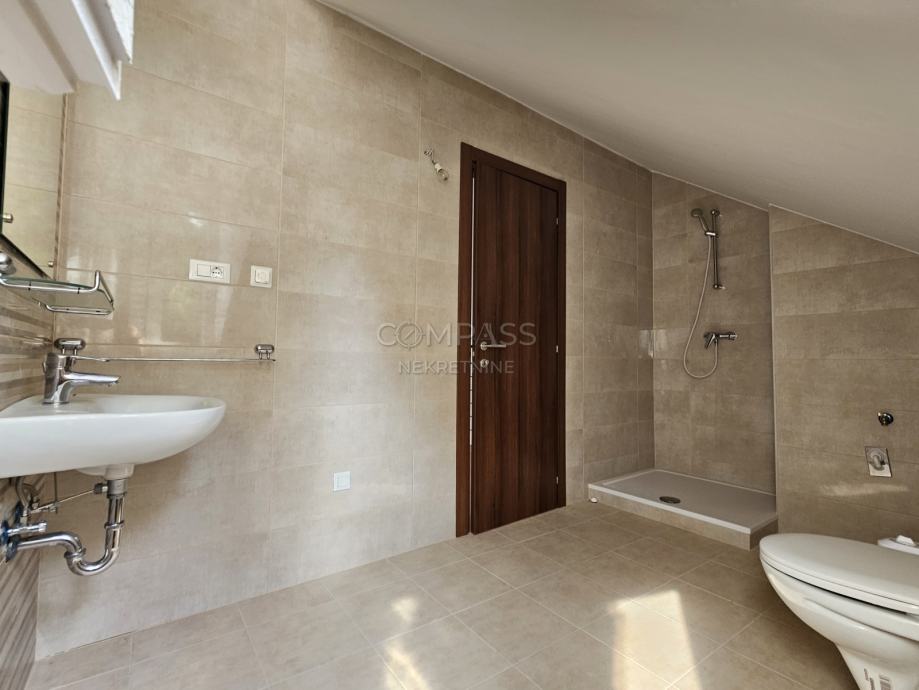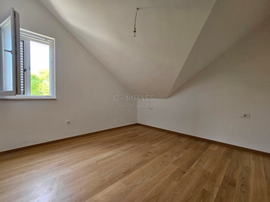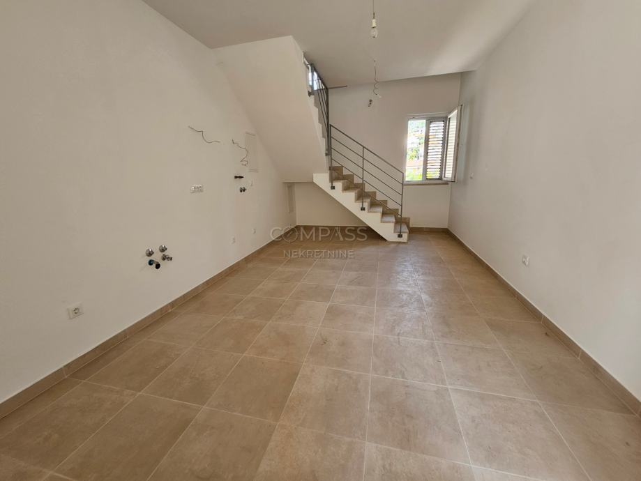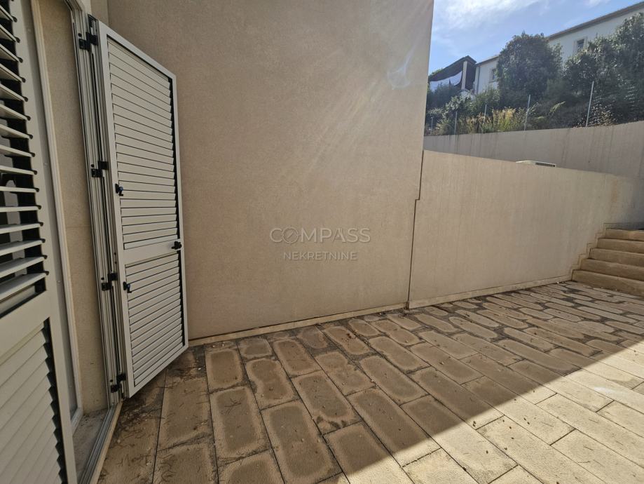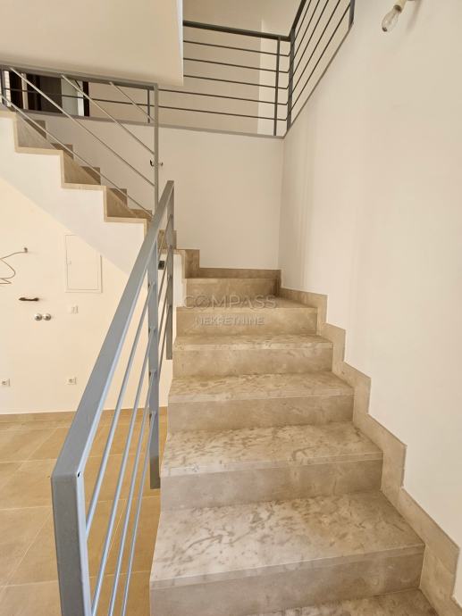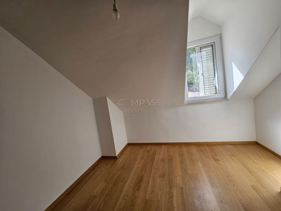 English: We mediate in the sale of a spacious apartment in a new building in the town of Hvar. The apartment is located right next to a beautiful beach and promenade, just a few minutes' walk from the Hvar waterfront. It consists of three bedrooms, two bathrooms in the attic, and on the 1st floor, an additional toilet and a living area; kitchen, dining room, and living room with a balcony, as well as a courtyard, outdoor terrace, and a garden spanning an additional 101.99 m2. The apartment also comes with a garage of 18 m2. Call us and seize this unique opportunity to buy an apartment on the sunniest island in the center of the town of Hvar. All information on mobile +385 91 607 56 27 or at info@compass-realestate.hr.