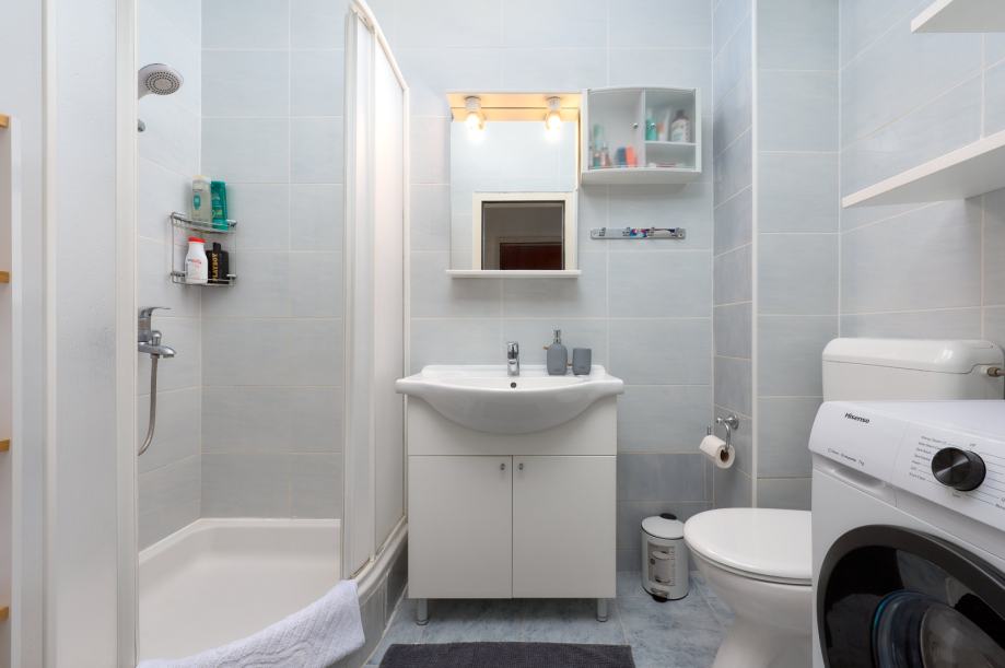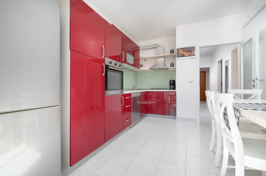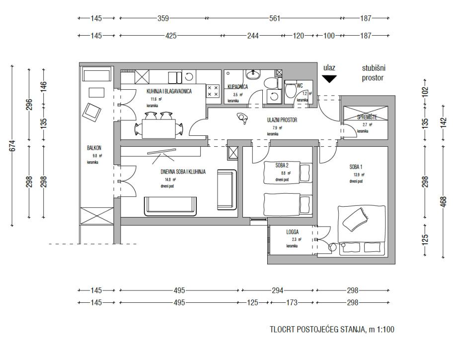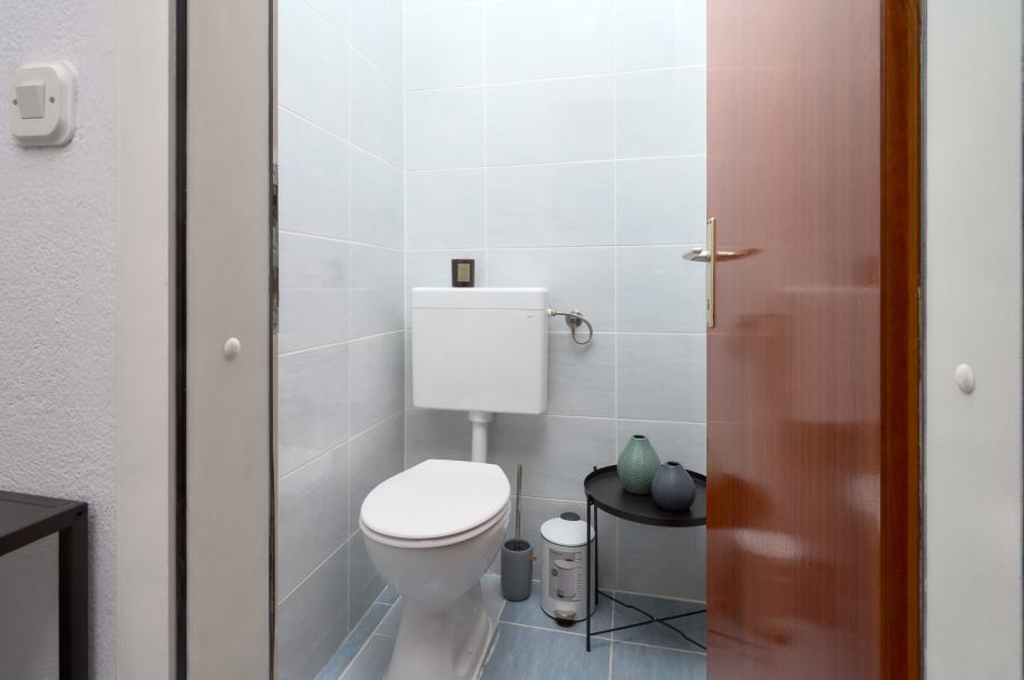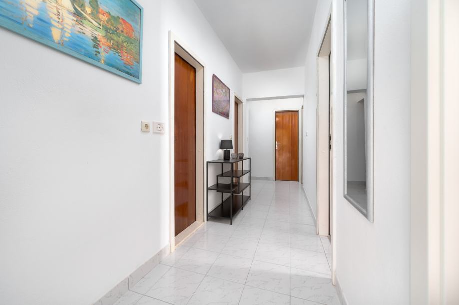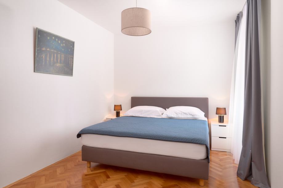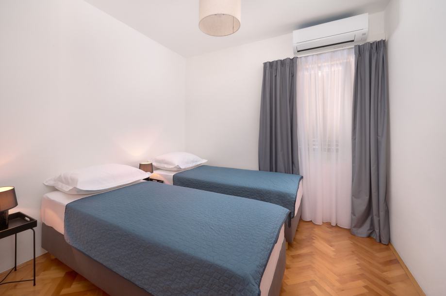 Stan se sastoji od 4 prostorije: dvije spavaće sobe, dnevni boravak, dva wc-a, kuhinje, blagovaone i sprema od koje je napravljen walk in ormar.