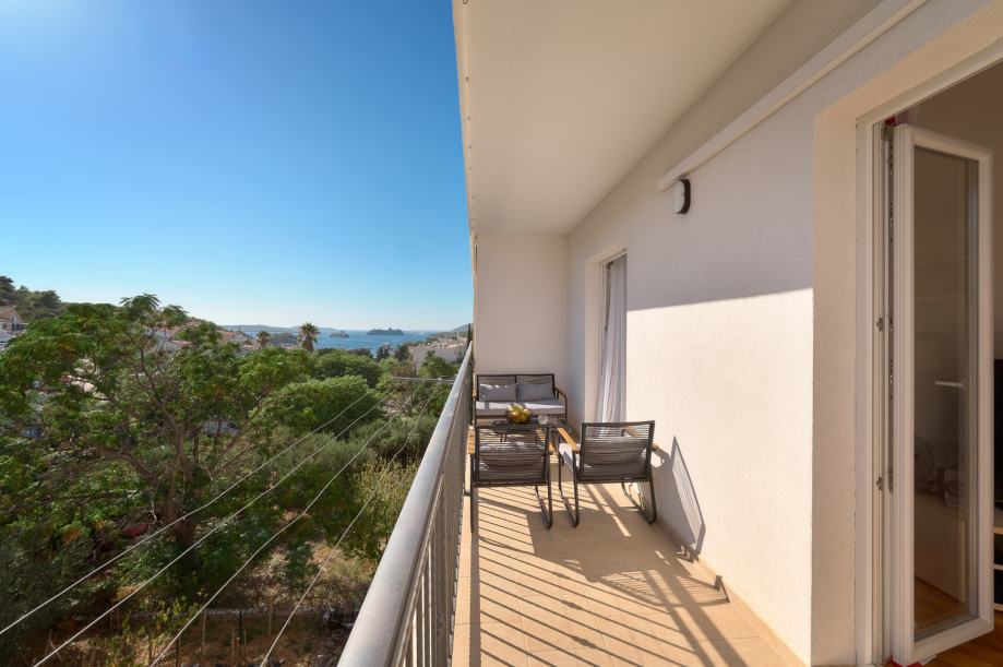 Nalazi se na polukatu sa strane ulaza zgrade, a s južne strane je na 3čem katu gdje se pruza pogled na paklene otoke.
