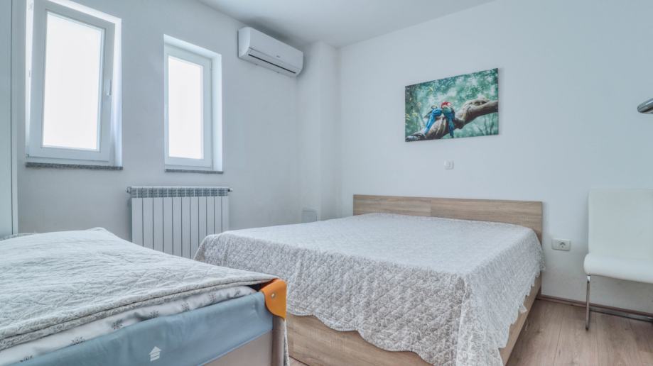 Master spavaća soba ima i vlastitu kupaonicu , te se u hodniku nalazi još jedna kupaona također s tuš kabinom i wc-om te dodatna spavaća soba.