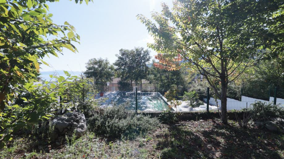 Iz open space prostora s staklenim stijenama, izlazi se na privatni vrt površine 117m2 s prekrasnim otvorenim pogledom na Kvarner, s panoramom mora, otoka Cresa i Krka, idealan za opuštanje ili druženje na otvorenom.