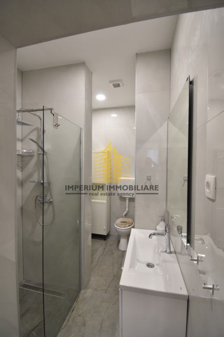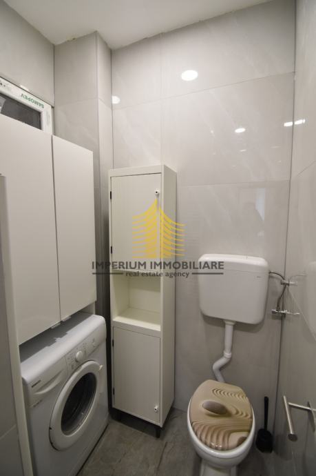 Unutrašnjost je opremljena modernom kuhinjom s potrebnim aparatima, uključujući perilicu posuđa i perilicu rublja. Dodatno, stan je namješten krevetom i televizorom, a klimatiziran je radi dodatnog komfora. Uz stan dolazi i pripadajuća ostava/skladište, kao i osigurano parkiralište, što je rijetkost u ovoj gradskoj zoni. Centralno grijanje pruža toplinu tijekom zimskih mjeseci, a životinje su dopuštene, što dodatno povećava atraktivnost ove nekretnine.