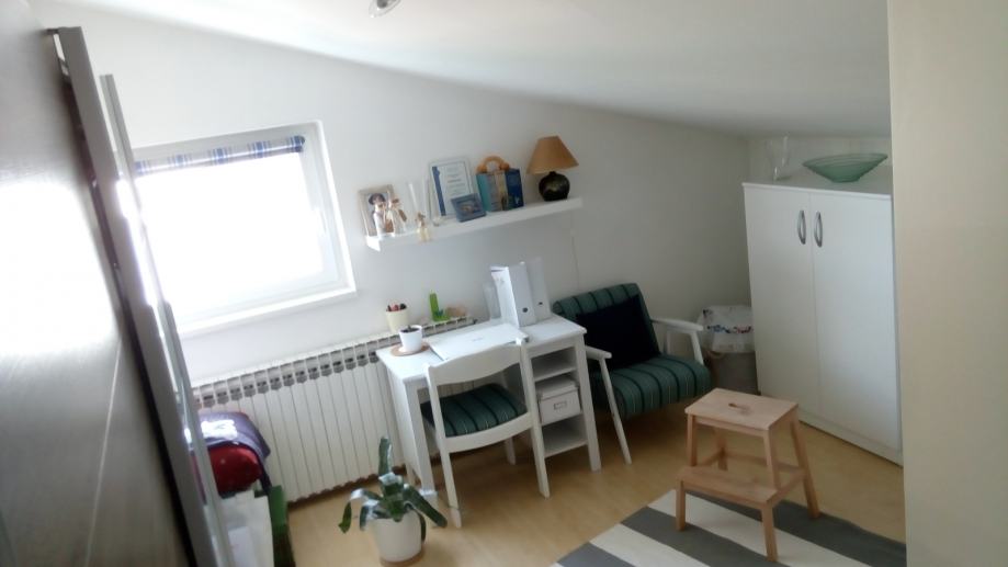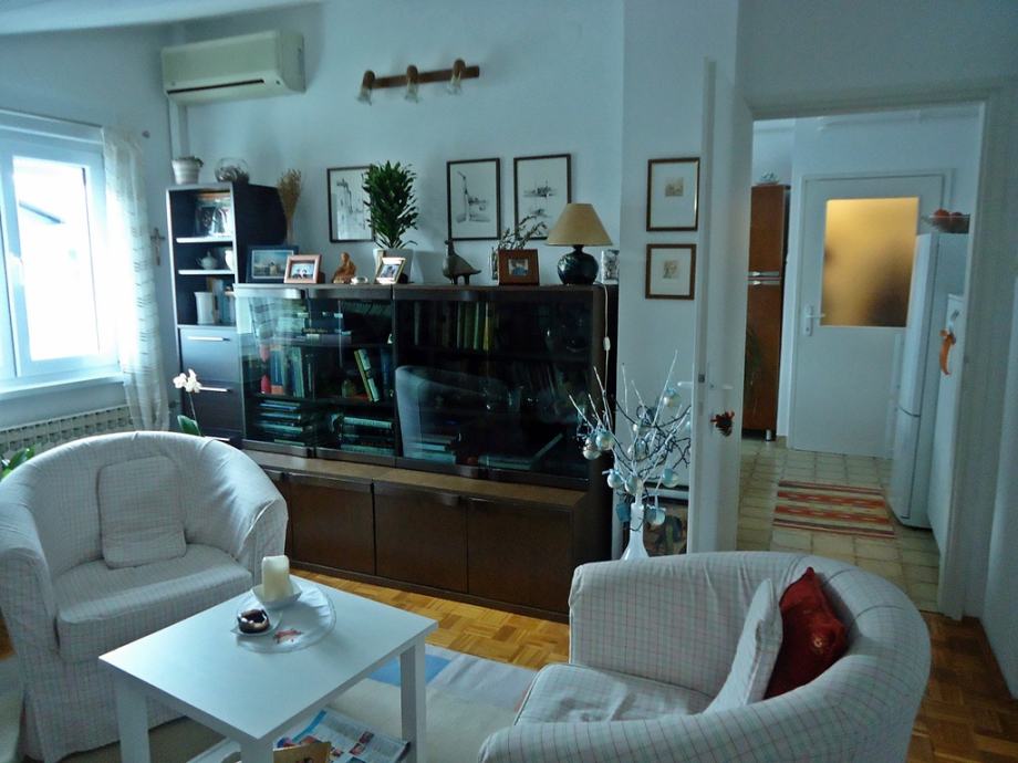 Dobro održavani dvosobni stan u zgradi sa 4 stana. Grijanje je plinsko etažno centralno, u stanu postoji i klima uređaj. Prije 3 godine kompletno je promijenjeno krovište, te stolarija (plastična). Uz stan dolazi garaža od 20 m2. Prodaja il zamjena za manji stan u Zagrebu.