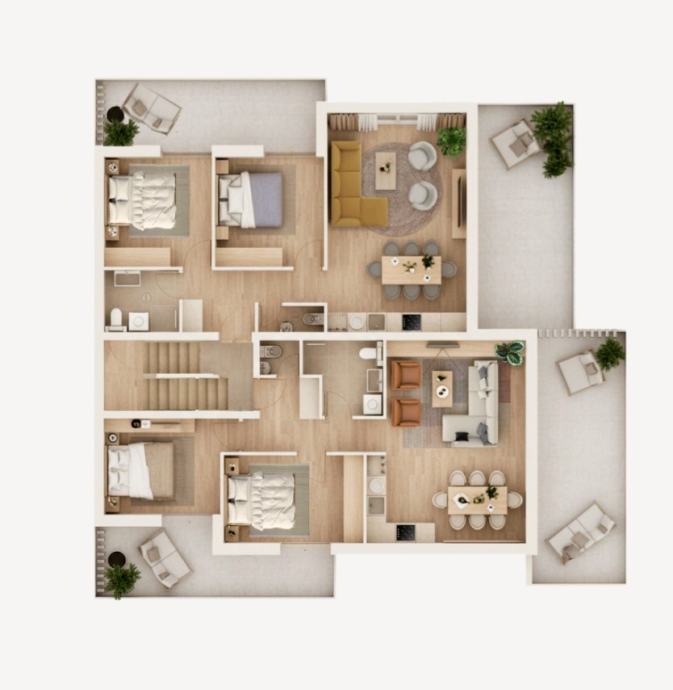 Vrhunski dizajn, moderan i funkcionalan dizajn sa premium završnim obradama, podnim grijanjem, klimatskim uređajima.
