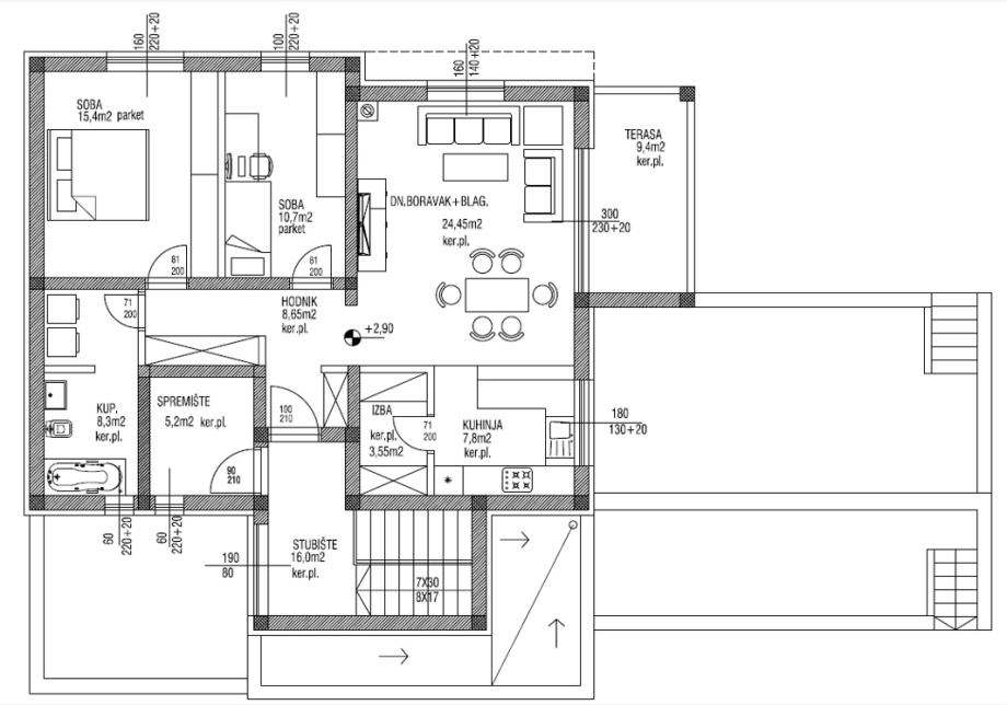 • veliki dnevni prostor s izlazom na terasu