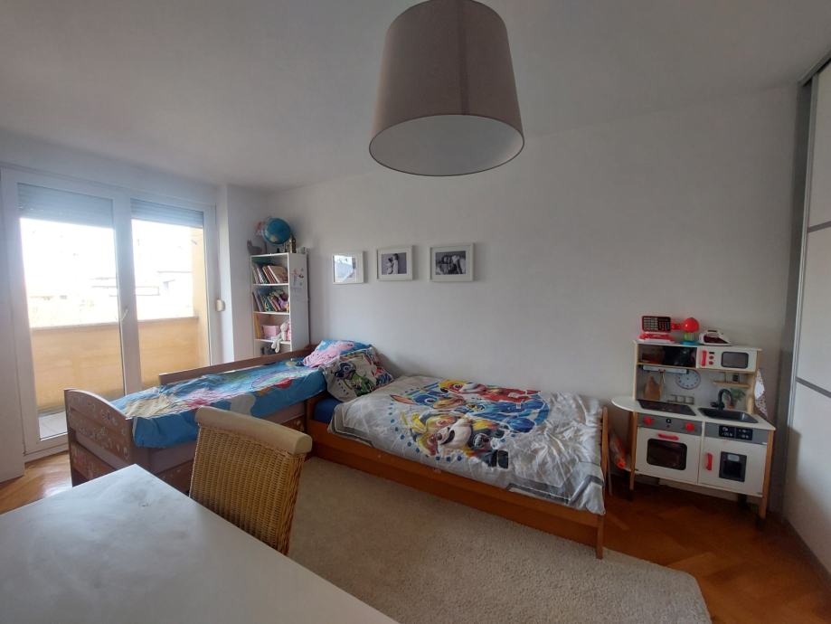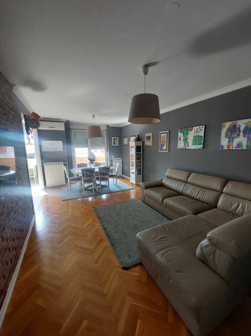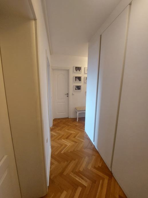 Sastoji se od: 2 spavace sobe, soba za garderobu, kuhinja(+ smocnica), blagovaonica, dnevni boravak, wc, kupaonica, dva balkona.