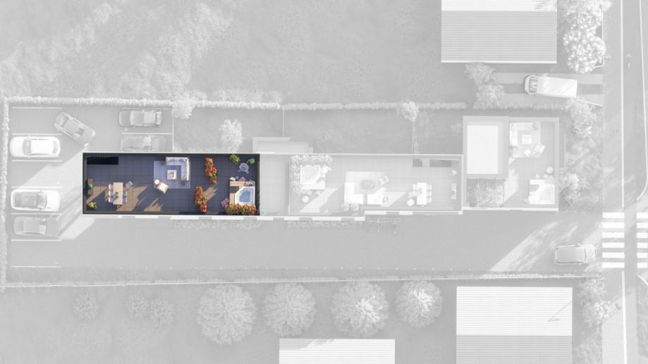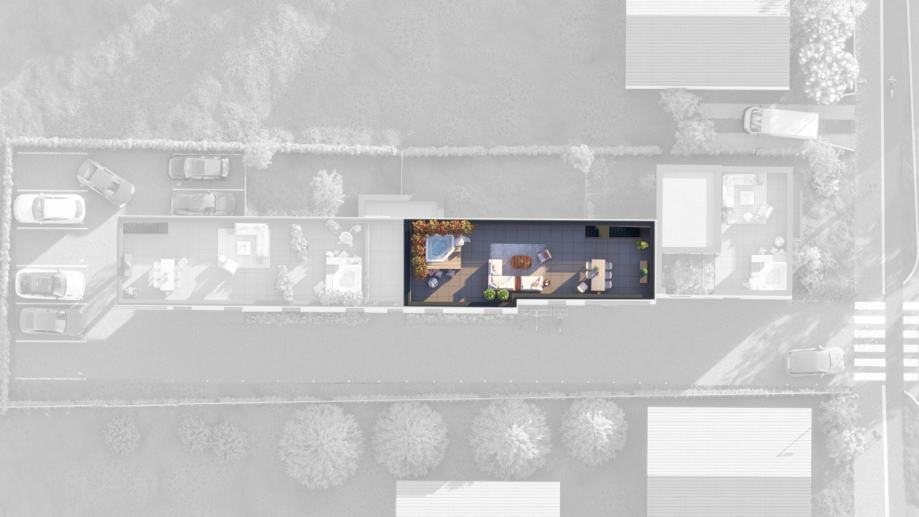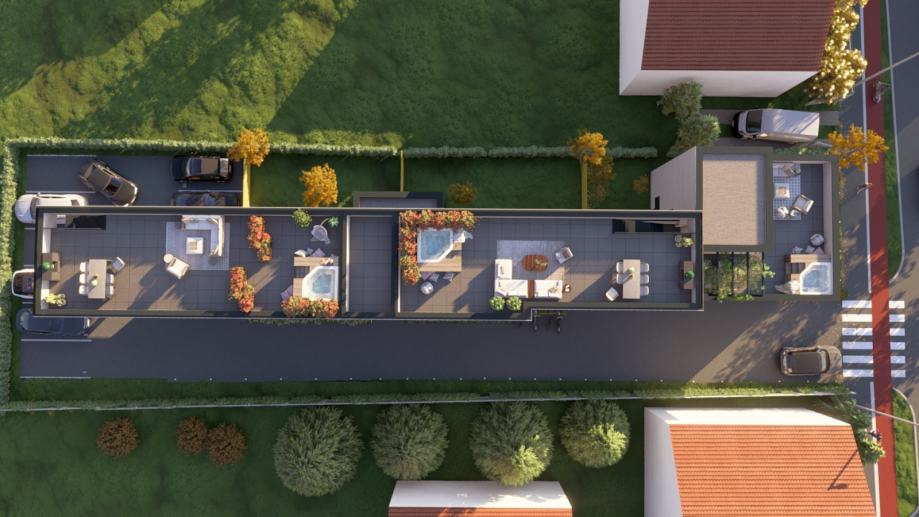 U stanove se stavlja kvalitetan troslojni parket, antracit stolarija, klima uređaji. Na drugom katu se nalaze dva penthousa sa velikom krovnom terasom od 93.59 m2 i 86.94 m2.