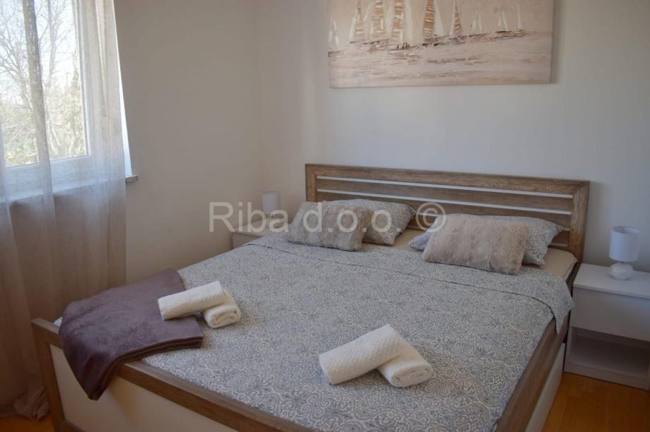 Nekretnina obuhvaća dvije komforne spavaće sobe. Jedna je uređena kao roditeljska spavaća soba s bračnim krevetom, dok druga služi kao dječja ili radna soba, obje s toplim drvenim podovima. Tu je još i kupaonica te manja loggia. Stanu pripada i spremište u podrumu.