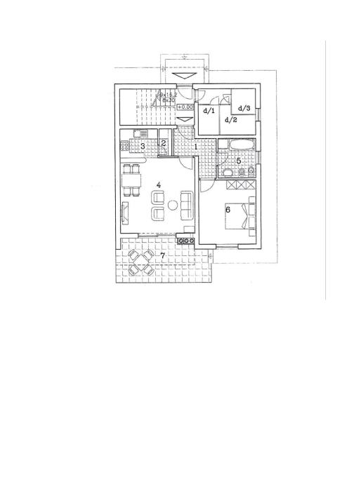 *Stan se sastoji od dnevnog boravka sa kuhinjom, spavaće sobe,hodnika, kupaonice, terase,vrta i ostave.