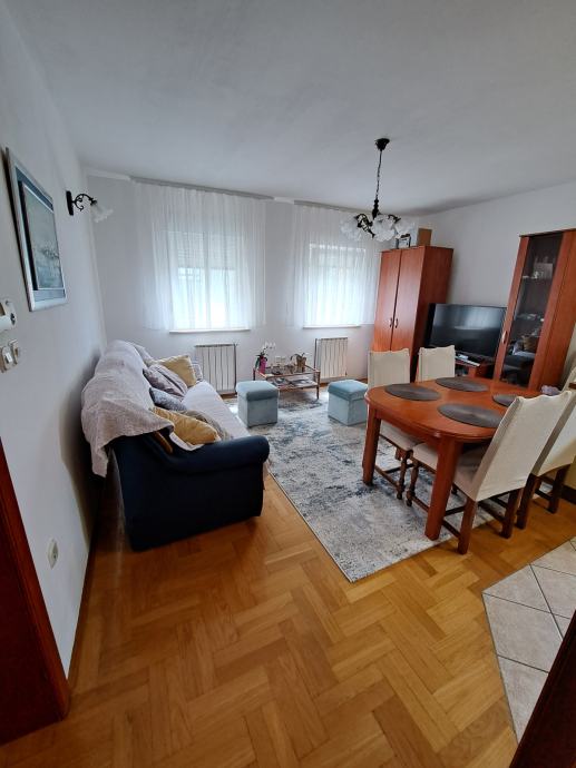 Prodaje se trosobni stan na I.katu, koji se sastoji se od ulaznog hodnika, kupaonice, dnevnog boravka s kuhinjom, dvije sobe i balkona ,te ostave na tavanu i garažnog parkirnog mjesta u podrumu susjedne zgrade, sveukupne površine 65,77m2.