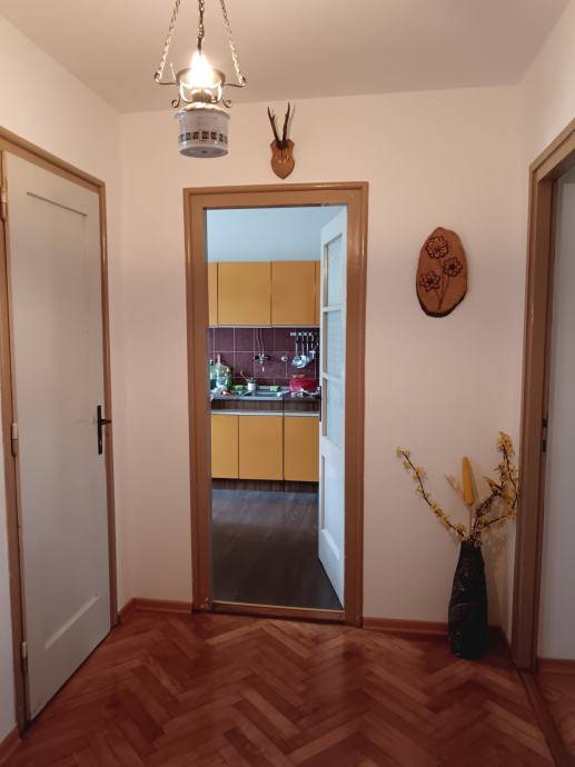 Stan je sunčan i udoban, te sadrži osnovne stvari potrebne za stanovanje. Sastoji se od hodnika iz kojeg se ide u kupaonu s wc-om, dvije komotne sobe od kojih je jedna s balkonom, ostave/špajze, te kuhinje s balkonom. Stanu pripada parkirno mjesto za jednu do dvije osobe i podrum odnosno šupa za odlaganje drva, obzirom da je grijanje na drva. Nedaleko od grada tj. samoga centra smješten je kvart Švarča, ugodan i miran za život, okružen zelenilom i mirnim okružjem van "gradske vreve" malen a dovoljno prostran ima osnovne potrebne sadržaje za mladu osobu, obitelj i djecu te starije osobe. Obzirom da kvart ima osnovnu školu i dječji vrtić idealan je za obiteljski život. U blizini je igralište, Konzum, benzinska postaja i KTC prodajni centar te bolnica. Također, vrlo blizu je ordinacija doktora opće medicine i zubara. Naime, do grada i studentskog sveučilišta i veleučilišta voze busevi a može se i pješice prošetati, kvart je idealan i za studente. Cijena najma iznosi 500 eura plus režije. Polog je u visini dvije mjesečne najamnine, odnosno 1000 eura. Ugovor o najmu stana se potpisuje kod javnog bilježnika uz solemnizaciju ugovora o najmu. Za sve informacije i upite možete me kontaktirati na moj broj mobitela: