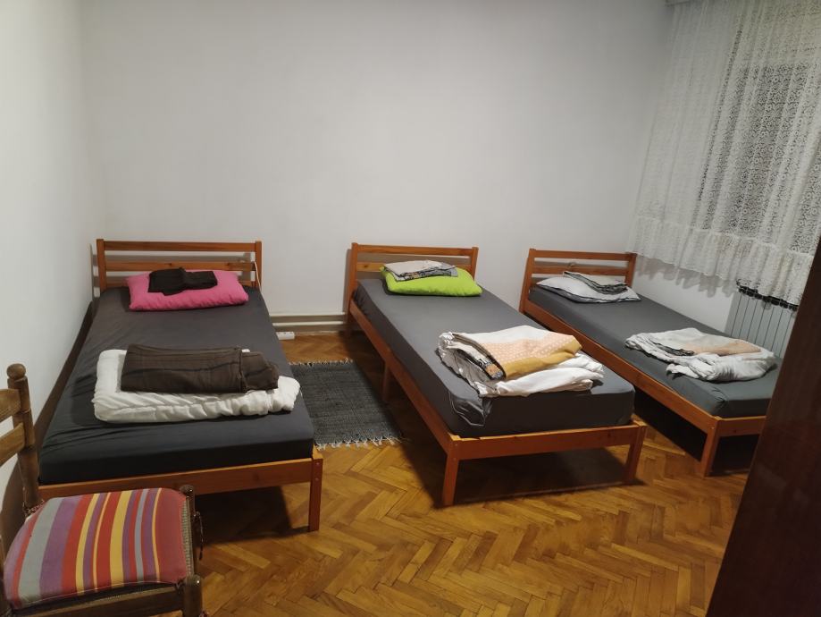 Iznajmljujem stan za 7 radnika. Cijena 160 eura po osobi za puni kapacitet stana. Režije su uključene u cijenu. Stan ima kupaonicu s WC-om i još jedan zaseban WC.