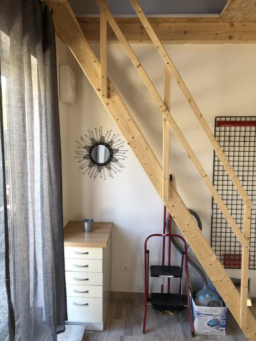 Jednosobni stan na izuzetnoj lokaciji u Katel Novome, 100 m od mora i 30 m od autobusne stanice iznajmljujem na duže vrijeme tijekom cijele godine. Stan je dvoetažan , u prizemlju kuhinja i dnevni boravak te WC/kupatilo a na katu soba potpuno opremljen. Ima vlastiti ulaz i parkirno mjesto pred ulazom. Cijena sa režijama ( struja, voda, odvoženje otpada i satelitska tv ) je 570 eur mjesečno .