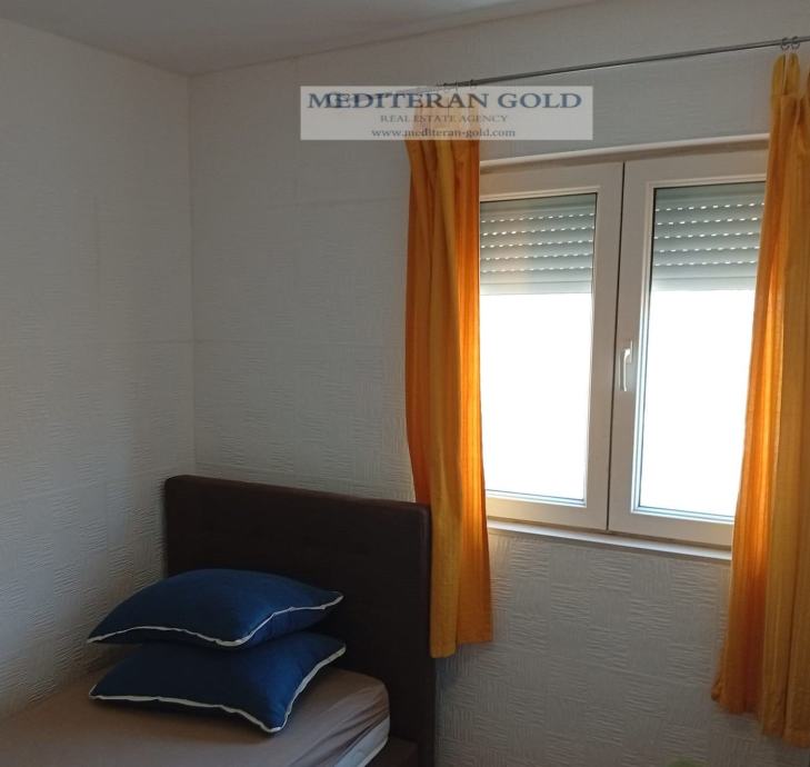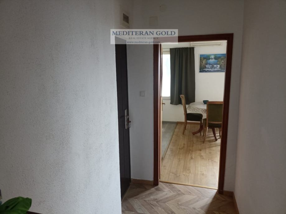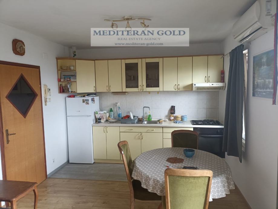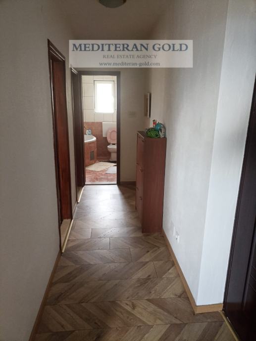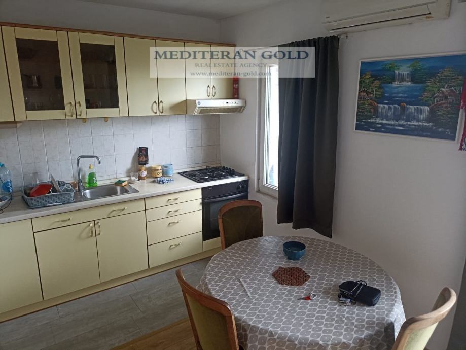 Kaštel Gomilica, dvosoban stan od 56,32m2, položen na prvom katu manje stambene zgrade, sastoji se od kuhinje i blagavaone, hodnika, dvije sobe, WC-a i balkona, orijentacije: jug-zapad i sjever. Stanu pripadaju dva parkirna mjesta koja su u cijeni. Prekrasan pogled, odmah je useljivo. Kompletna infrastruktura i blizina svih sadržaja. Od mora udaljeno 830m.