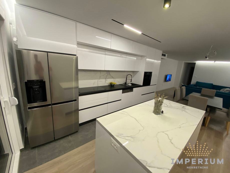 Također stan posjeduje fan coil sustav klima u svim sobama, podno grijanje po cijelom stanu na sustavu dizalica topline, komarice na svim otvorima/zatvorima, roštilj, LAN umreženost po stanu.