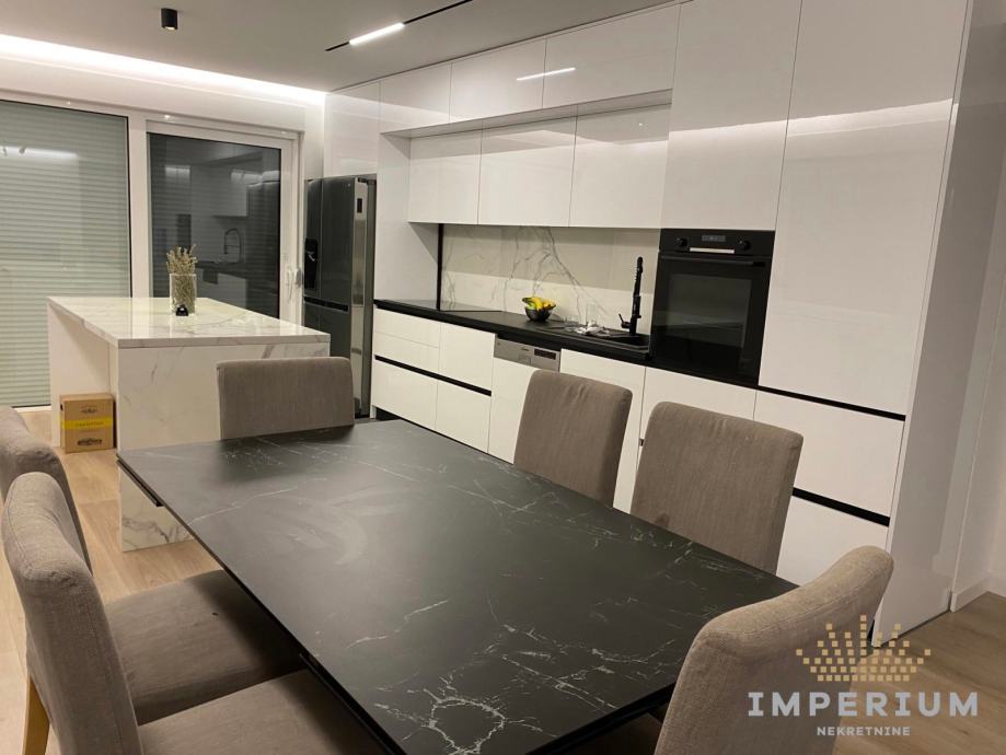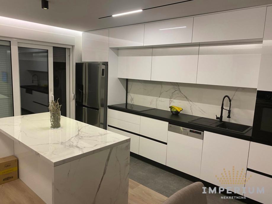 Stan je površine 130.00 m2, nalazi se u prizemlju a sastoji se od 5 spavaćih soba, 2 WC-a, hodnika, velika kuhinja s dnevnim boravkom, te balkona. Stan posjeduje vrt i terasu od 100m2. Stan posjeduje privatno parkirno mjesto.