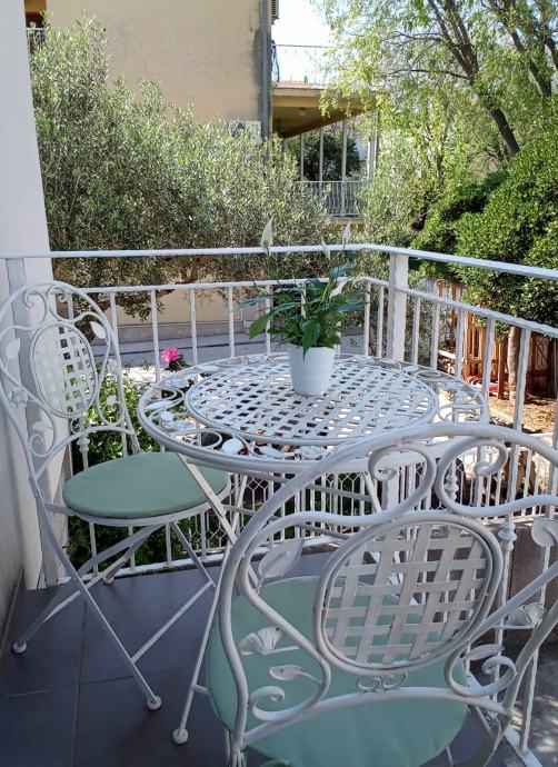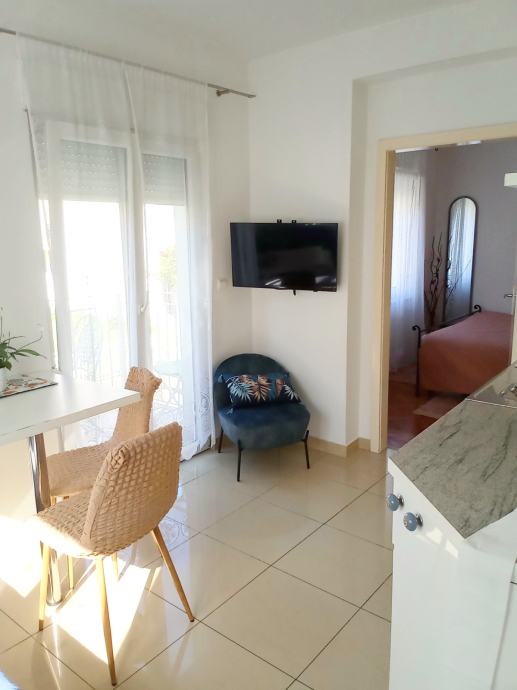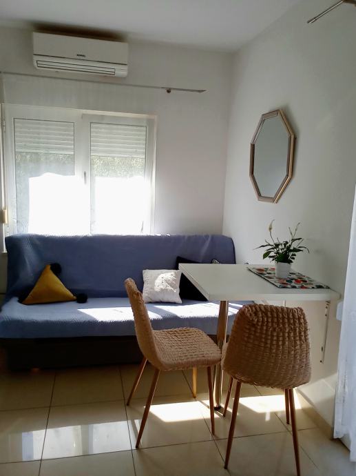 Jednosoban stan s balkonom na prvom katu privatne kuce. U centru Kastel Luksica, blizina skole, trgovina, autobusne stanice, poste, ljekarne i ostalih sadrzaja. Mirno okruzenje i udoban za boravak. Potpuno opremljen, klima uredjaj, perilica rublja, WiFi...