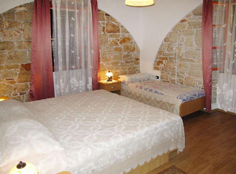 3. Treća etaža (kuhinja s blagavaonicom, i kauč, spavaća soba s bračnim krevetom i krevetom za jednu osobu, druga spavača soba s krevetom za jednu osobu, hodnik i kupaonica) - potkrovlje– do 4 osobe. Svaka etaža ima zaseban ulaz.