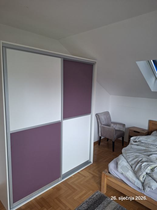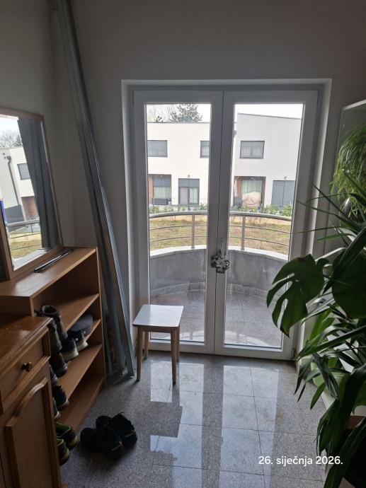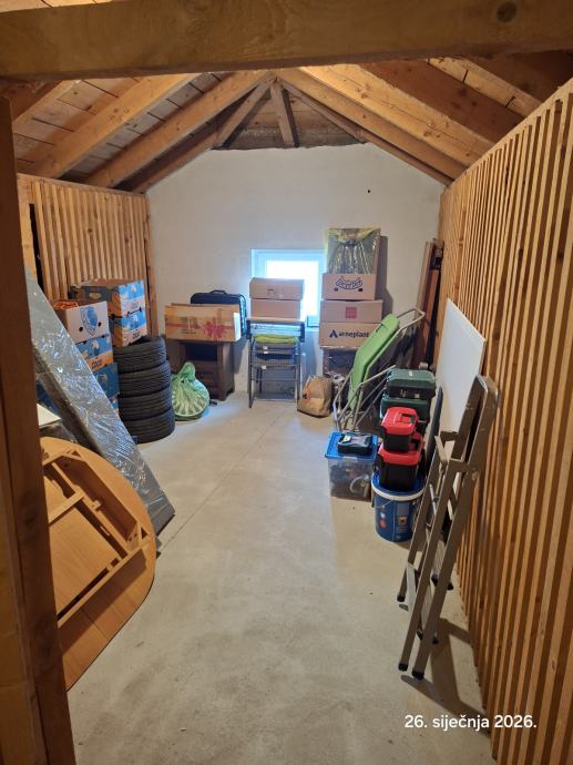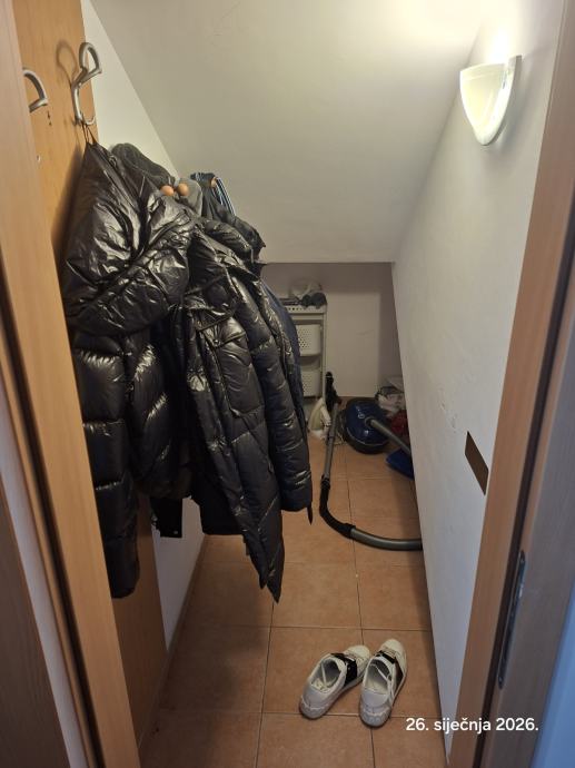 Stan se sastoji od dvije etaze po 45 m2, garaze povrsine 15 m2, vanjakog parkirnog mjesta 15 m2, supe na tavanu povrsine 15 m2 i zajjednickog vrta povrsine cca 300 m2.