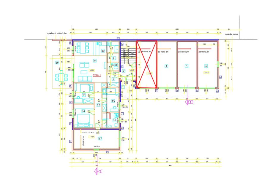 Četverosoban stan S1 88,92 m2 nalazi se u prizemlju.