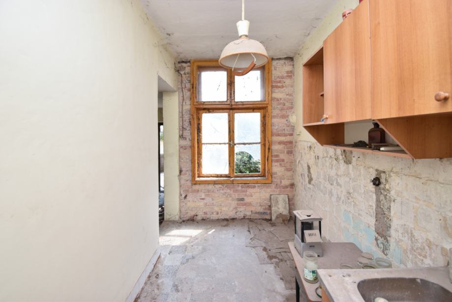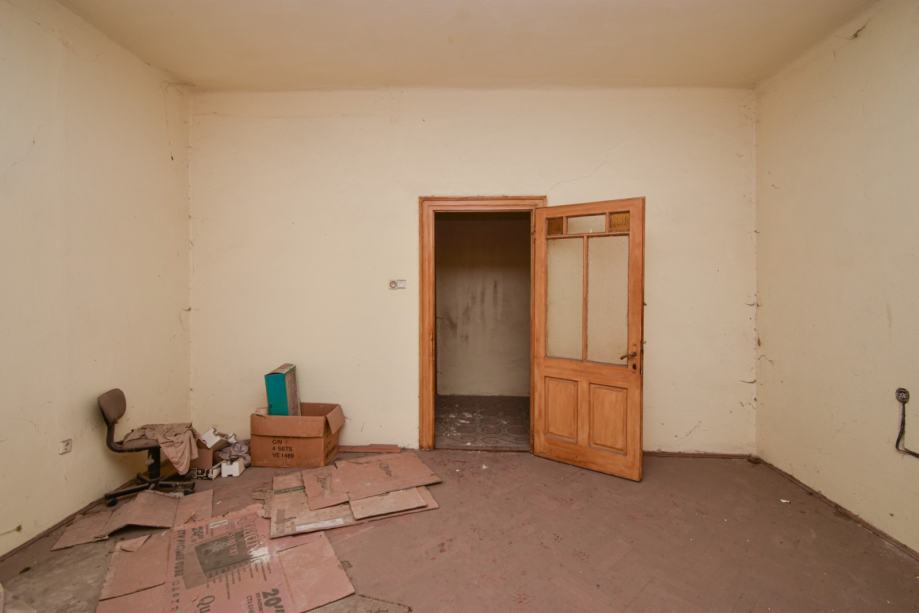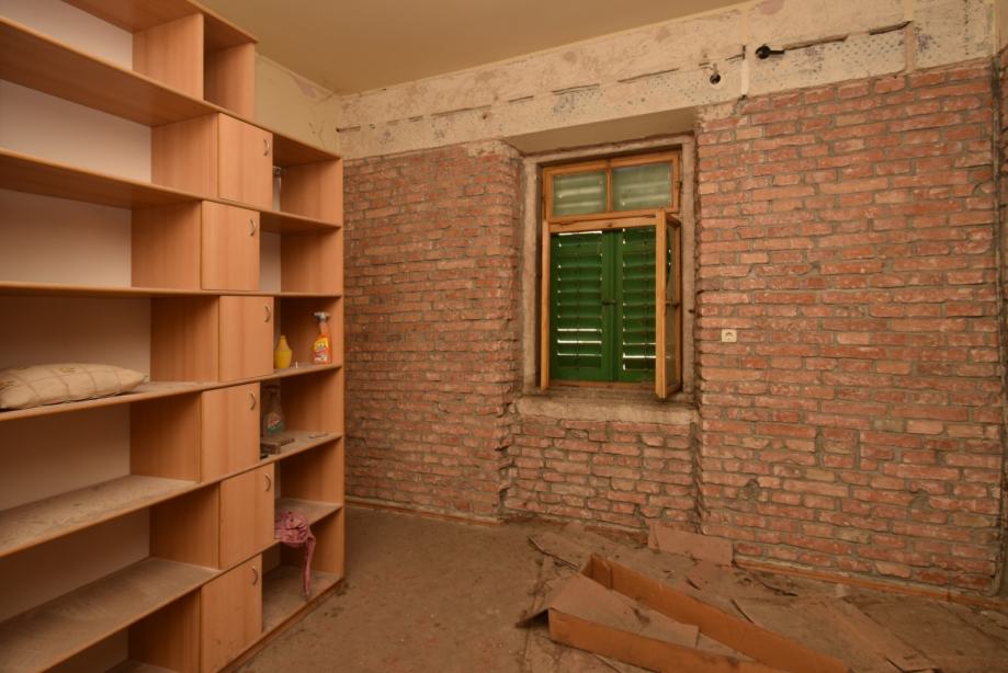 Veliki prostrani stan na prvoj etaži, s visokim stropovima, površine 127 m2. Sastoji se od hodnika, četiri spavaće sobe, kuhinje, dvije kupaonice te natkrivene i nenatkrivene terase. Na katu iznad, odnosno potkrovlju, površine 111 m2 se nalaze dvije sobe, hodnik, te kuhinja s blagovaonicom, sve prazno i neuređeno. Stanovi zahtjevaju potpunu renovaciju a imaju potencijala za pretvoriti ih i u više stambenih jedinica ili u manji hostel.