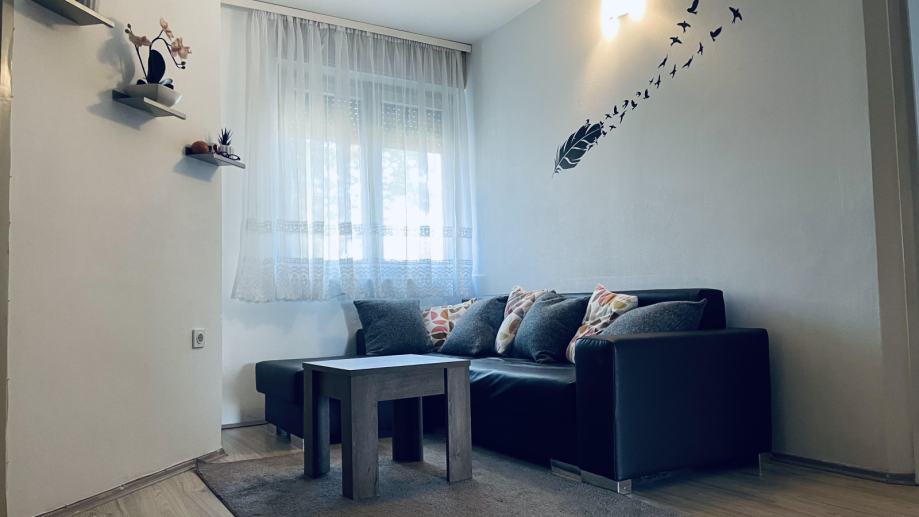 Iznajmljujem namješten dva i pol sobni stan, 62 kvadrata, u centru Koprivnice – Trg Eugena Kumičića 7, 1. kat. Stan se nalazi u blizini trgovina, banke, škole, bolnice, policije i svih ostalih bitnih sadržaja. Sastoji se od potpuno opremljene kuhinje sa svim aparatima i posuđem, dnevnog boravka s blagovaonom, spavaće sobe, manje sobe, kupaonice, hodnika i balkona. Režije su minimalne i plaćaju se posebno kao i komunalno davanje. Za struju, vodu i plin postoje zasebna brojila. Stan iznajmljujem na duže vrijeme. Obavezan polog u visini jedne mjesečne stanarine.