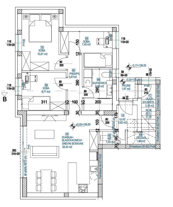 Površina stana iznosi 71,57 m2 + vrt