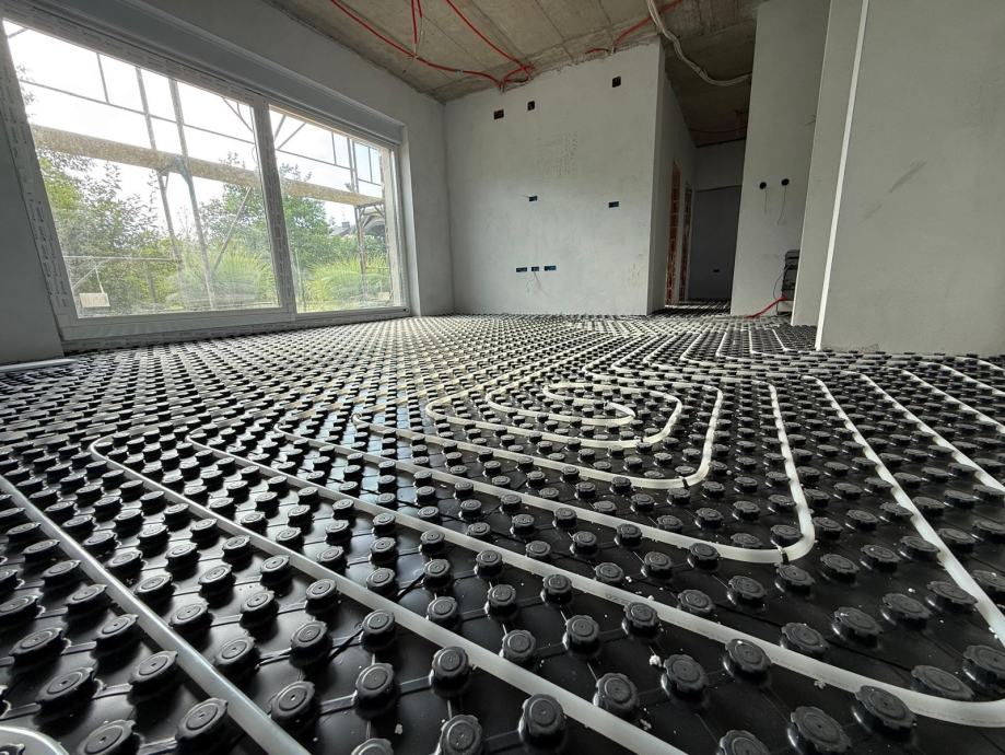 ▪️ podno grijanje (raster - ploča ima visinu od 50 mm, koja se sastoji od 30 mm izolacije i 20 mm visokih čepova, sadrži crnu PS (polistirensku) foliju debljine 0,6 mm, koja pruža dodatnu izolaciju i zaštitu)