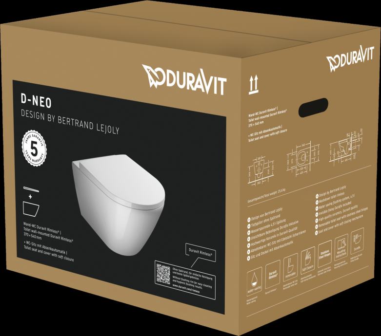 ▪️ sanitarije visoke kakvoće proizvođača DURAVIT, npr. D-NEO WC školjka + daska soft close + Duravit Rimless® technology, D-NEO umivaonik, za tuširanje DURAVITOV WAVE SHOWER SYSTEM, ARMATURE DURAVIT WAVE SINGLE LEV.BASIN MIXER M