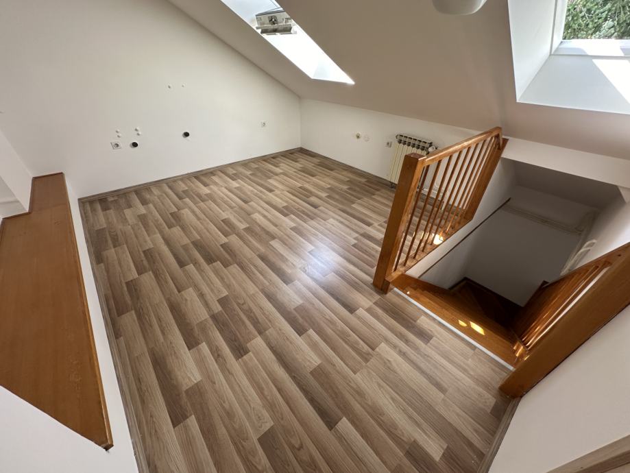 Prva etaža stana sastoji se od prostranog dnevnog boravka i kuhinje sa blagovaonicom, te jedne spavaće sobe. Na drugoj etaži nalazi se još dvije prostrane spavaće sobe.