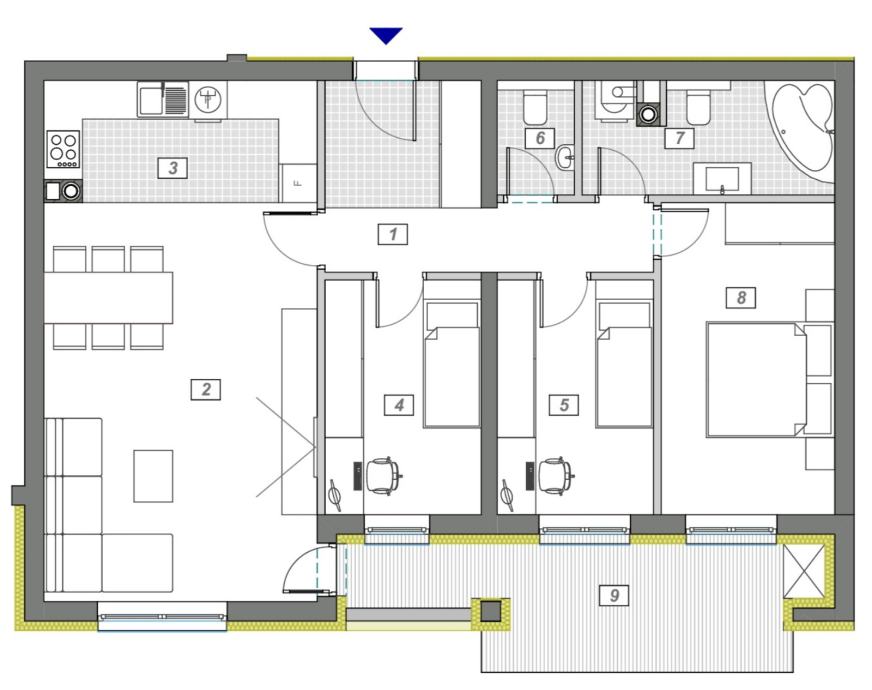 ▪️ veliki otvoreni dnevni prostor s izlaskom na prekrasnu lođu na južnoj strani, intimna, zaklonjena od pogleda, s pogledom na uredan travnjak!