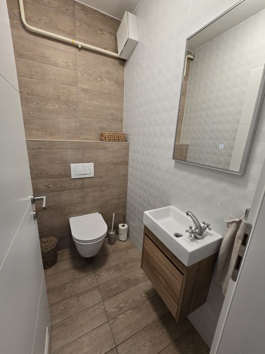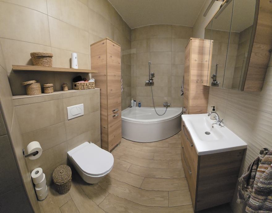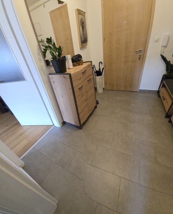▪️ kvalitetna gradnja, izvrsna statika zgrade, korištenje materijala koji promiču zdravlje i dobrobit - glinena opeka, opeka između stanova. Stolarija vanjska s roletama i ugrađenim plisse zavjesama - komarnicima, kvalitetan unutarnji raspored stambenog prostora. Podovi u sobama parket, keramika i sanitarije visoke kakvoće. Kompletan namještaj i oprema kvalitetni. Završni sloj bojenja vanjske fasade silikonski. Spremište u prizemlju 2.96 m2, zaseban vanjski ulaz u prostor sa spremištima, vanjsko parkirno mjesto 12.50 m2. Zgrada ima lift.
