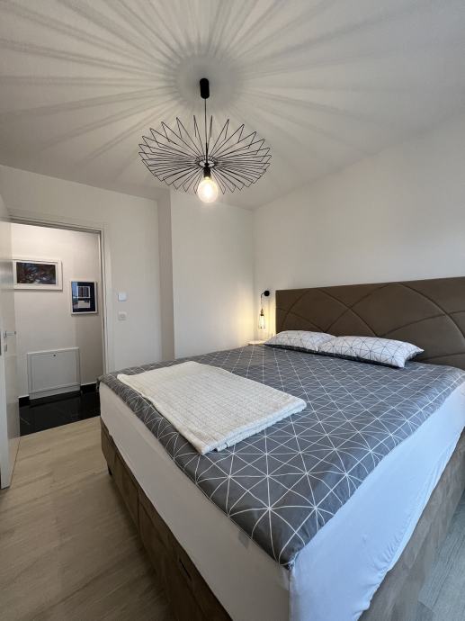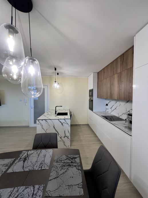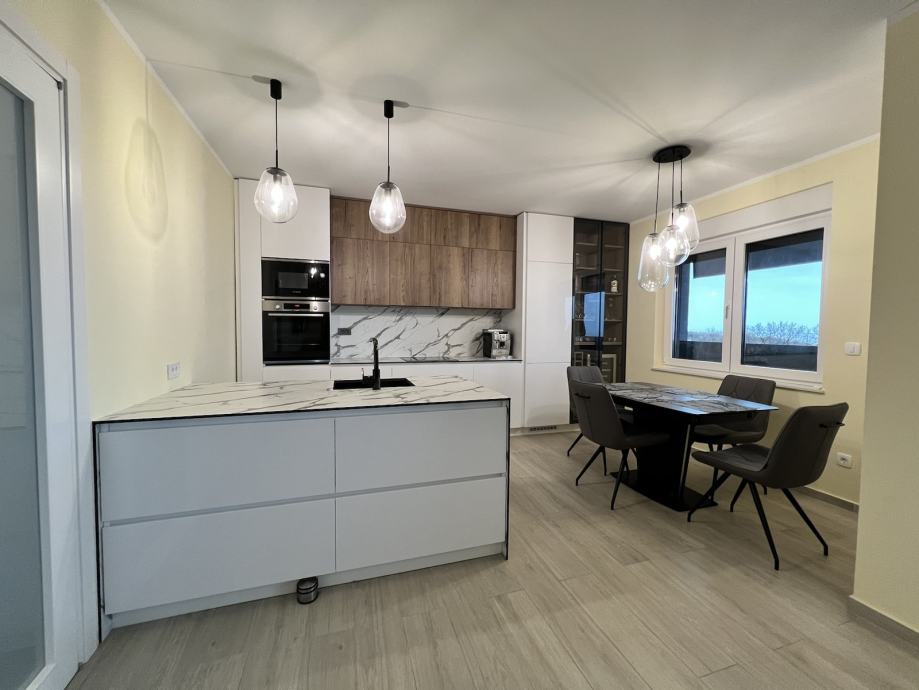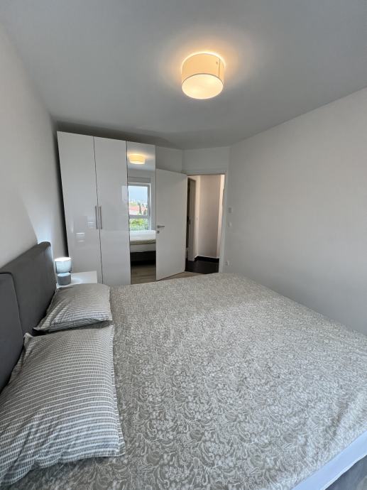 Iznajmljuje se kompletno namješten i uređen stan od 83 m2 u novogradnji na odličnoj poziciji, u blizini mora i plaža u Kostreni. Stan se nalazi na najvišoj etaži zgrade.