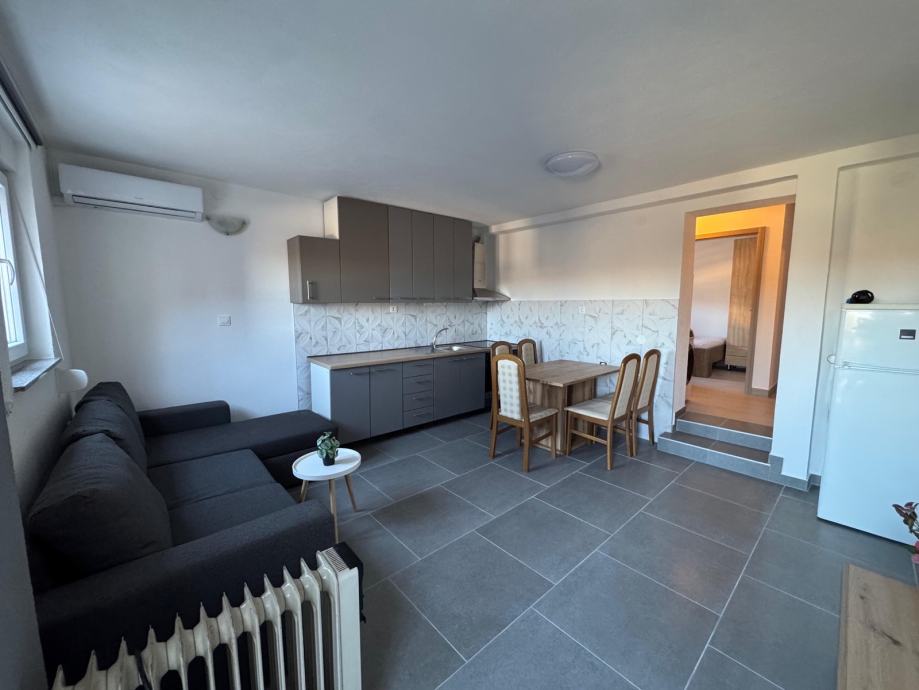 Iznajmljujem cetverosoban stan od 126 m2 koji se sastoji od dnevnog boravka sa kuhinjom i blagovaonom, terasom/lodjom, hodnikom, 3 spavace sobe, kupaonicom i 2 parkirna mjesta za aute...