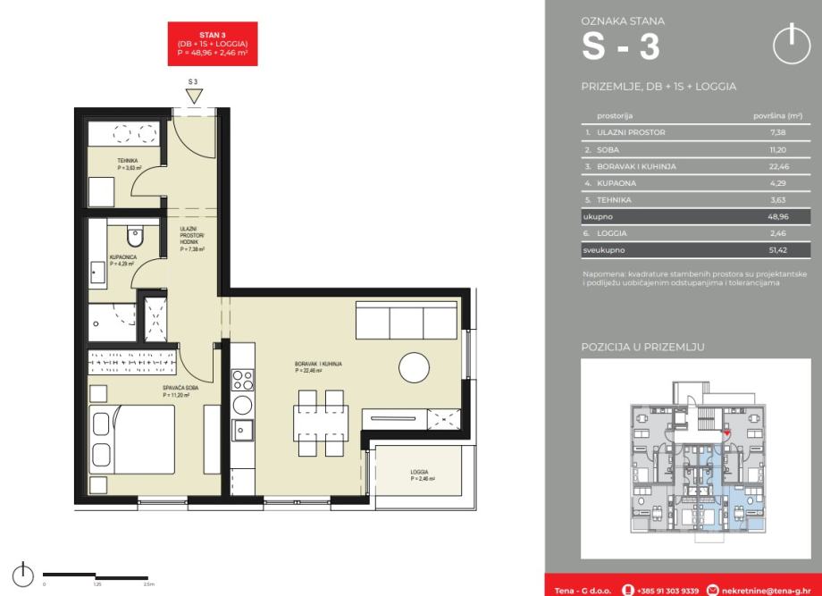 STAN 3 – PRIZEMLJE – 51,42 m2