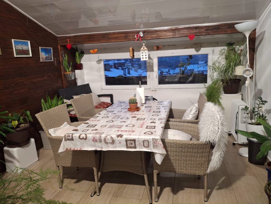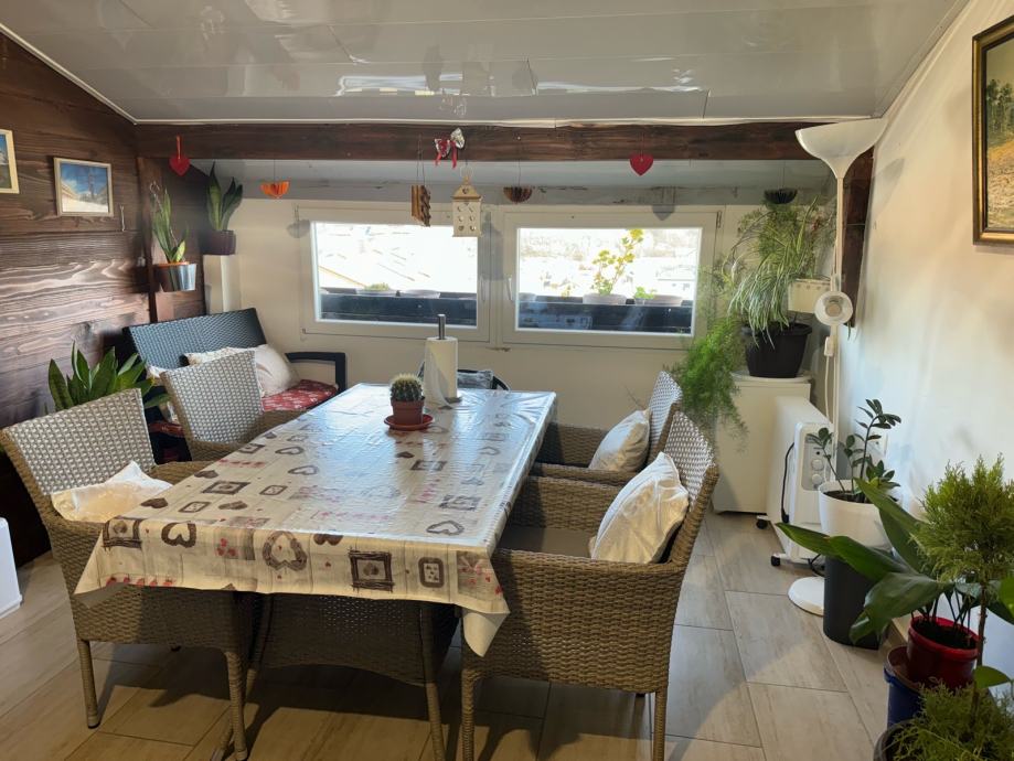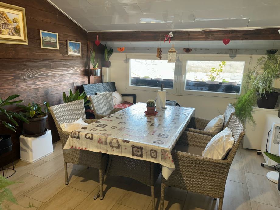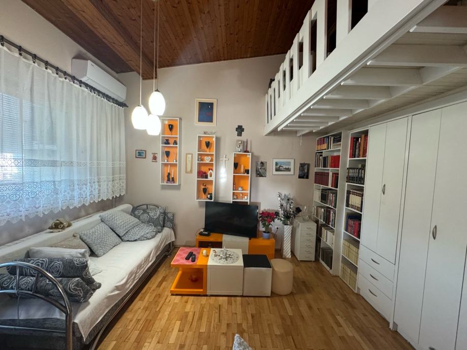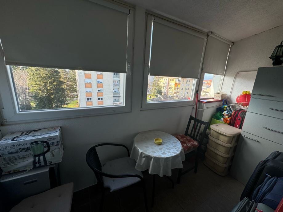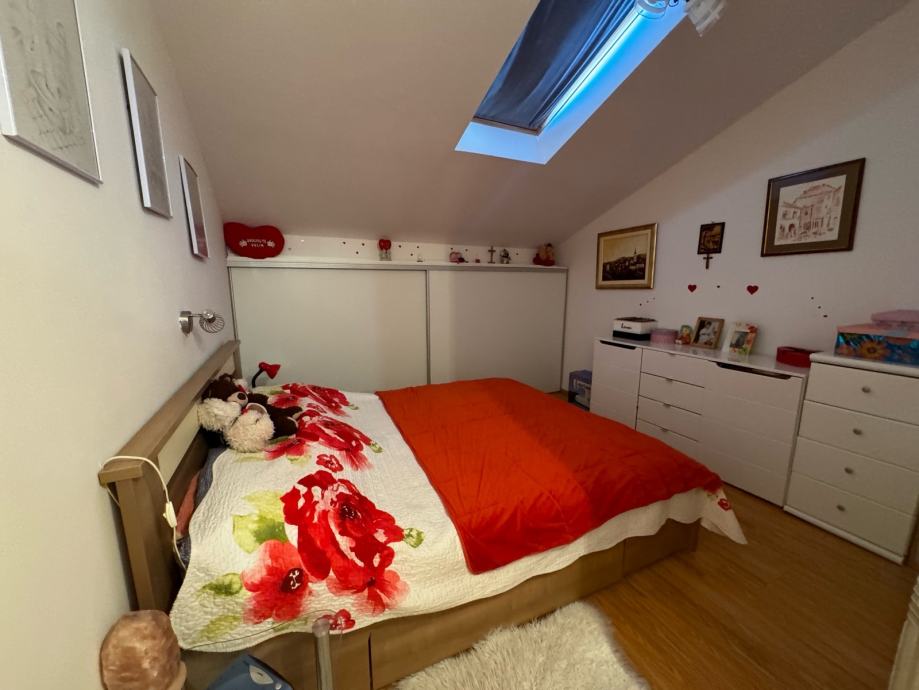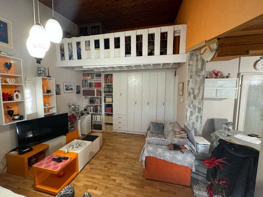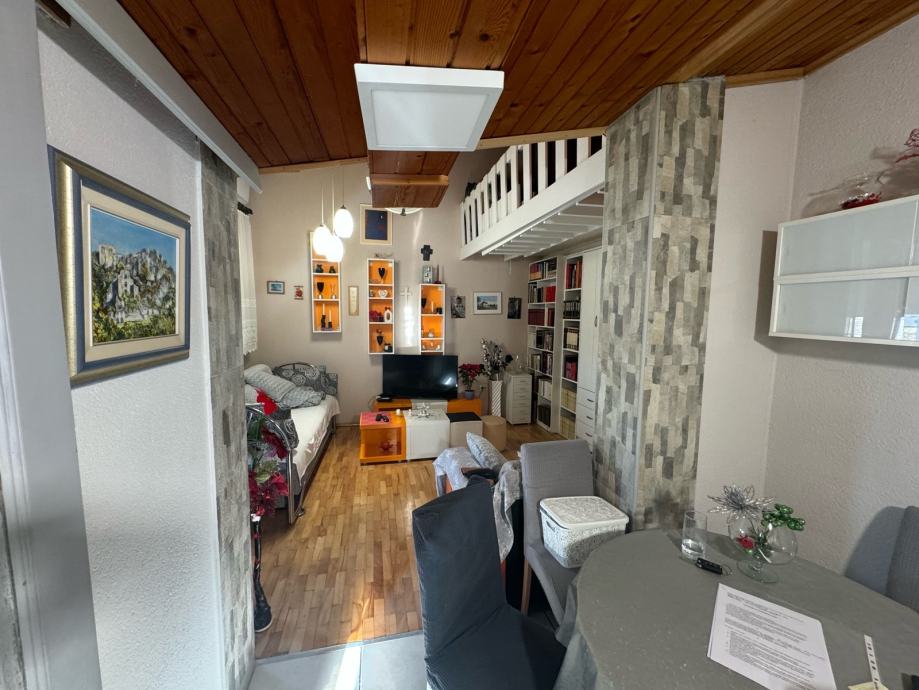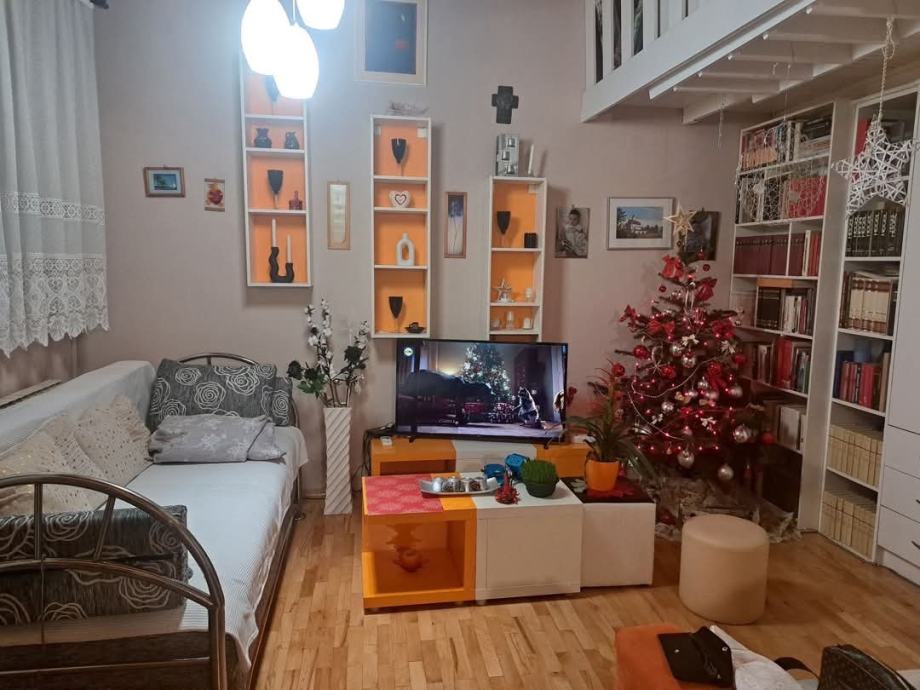 Na prodaju stan od 60m2 koji ima prekrasan pogled na grad. Stan se sastoji od hodnika, kupaonice, spavaće sobe, kuhinje sa blagovaonicom, jedne manje sobe, balkona. U dnevnoj sobi je galerija. Stan koristi i zatvorenu terasu površine cca 12m2 koji ima na korištenje odlukom svih stanara. U podrumu je spremište. 0911226677.