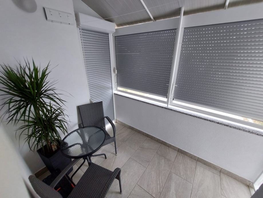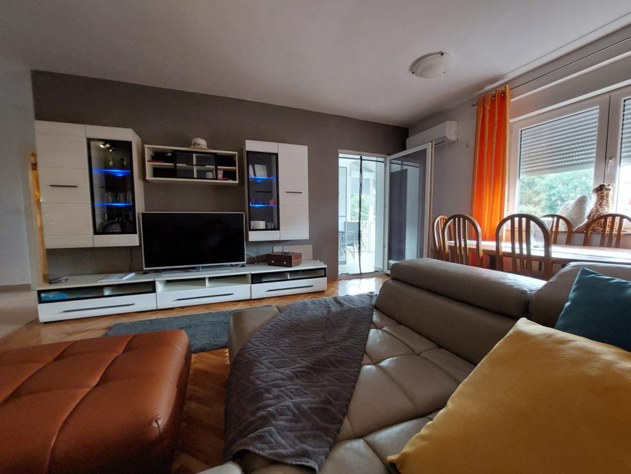 Stan je opremljen pvc stolarijom, protuprovalnim vratima, nove aluminijske rolete i nadstrešnica, komarnici,kompletne instalacije promijenjene ( voda,odvodnja,struja..), hrastov parket,nova keramika,viseća školjka i bide.Walk inn tuš sa staklenom stijenom.