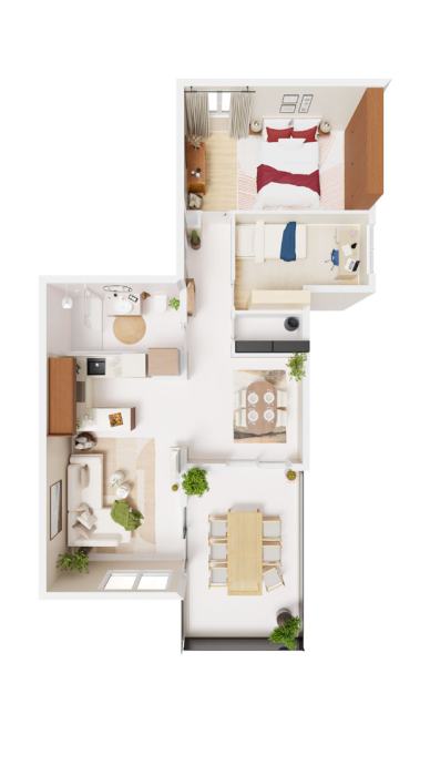 Stan na 3. katu, 81,47 m2 (hodnik, kuhinja sa dnevnim boravkom i trpezarijom, tri spavaće sobe, kupatilo, spremište i terasa ) + krovna terasa iznad stana ukupne površine 72,30 m2 + spremište u prizemlju 3,84 m2 i parkirno mjesto u dvorištu.