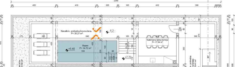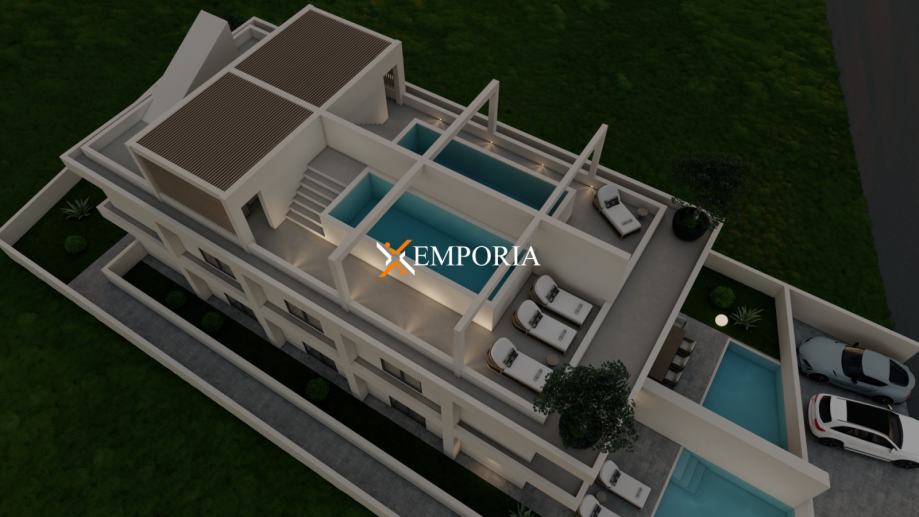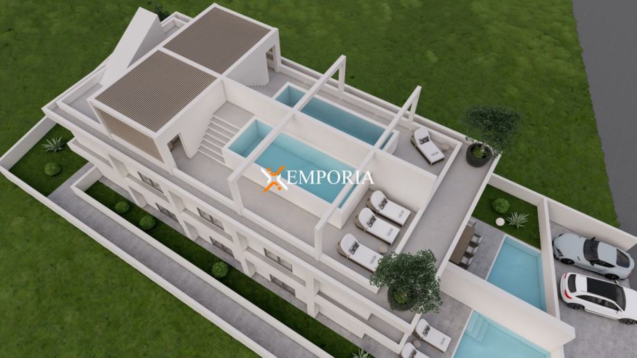 Zgrada se gradi od betonskih zidova s manjim udjelom termo blokova. Na krovnoj terasi nalazi se i vanjski roštilj.