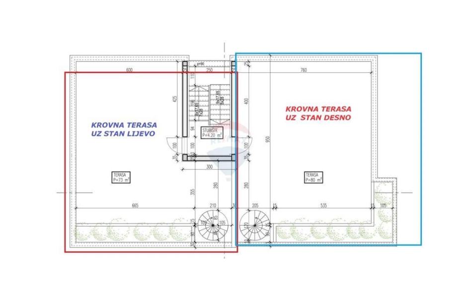 Na krovnu terasu se izlazi spiralnim stepenicama sa balkona od stana, te je tako zagarantirana privatnost boravka.